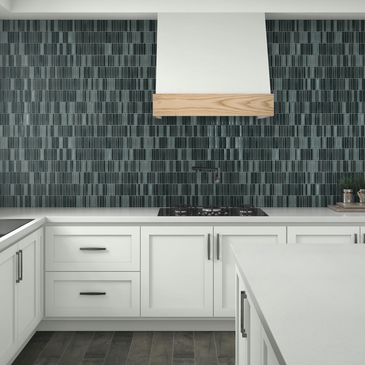 1″ x 4″ Cascading Waters Cerulean Swell Mosaic Tile Rectangle Random Straight Stacked Glass