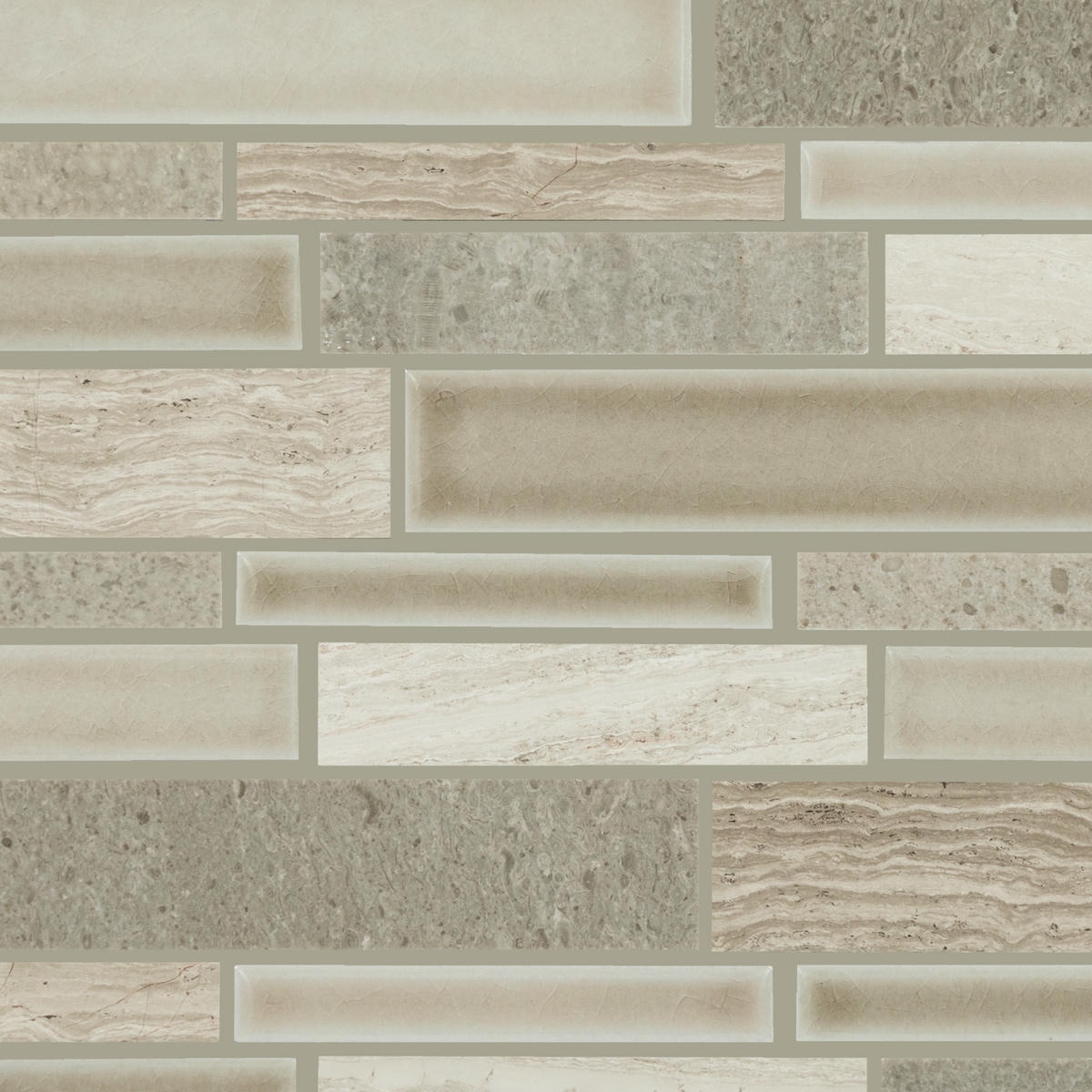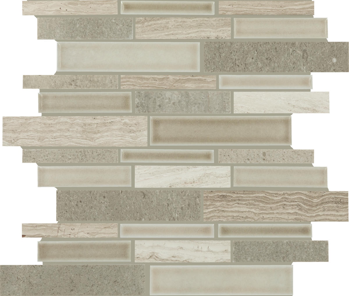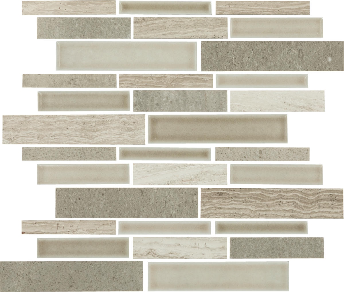 11.25″ x 11.75″ Raine Cumulus Grey Bld Mosaic Natural Stone Tile Rectangle Random Linear Polished