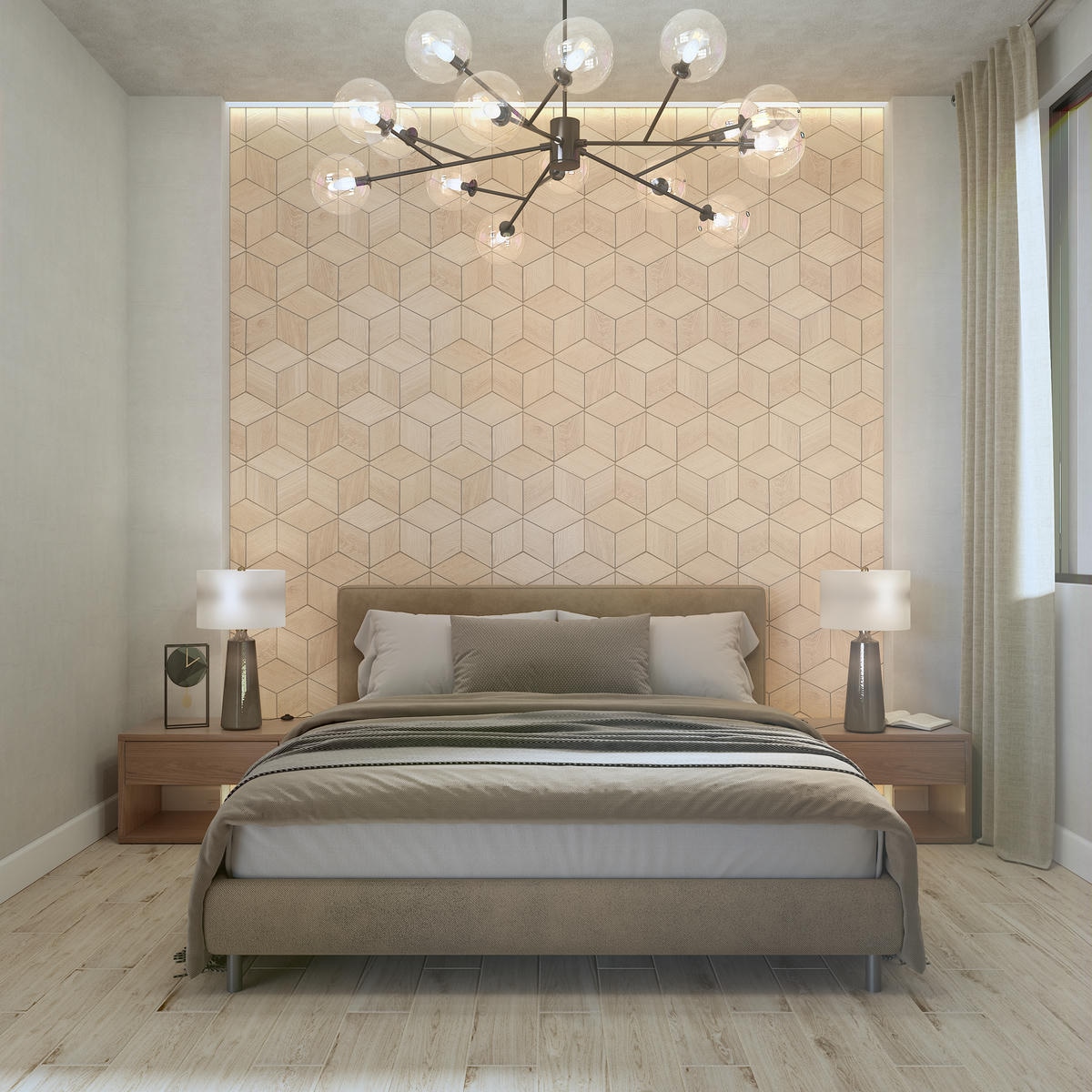 11.5″ x 11.5″ Emerson Wood Butter Pecan Mosaic Tile Rectangle 3D Cube Matte