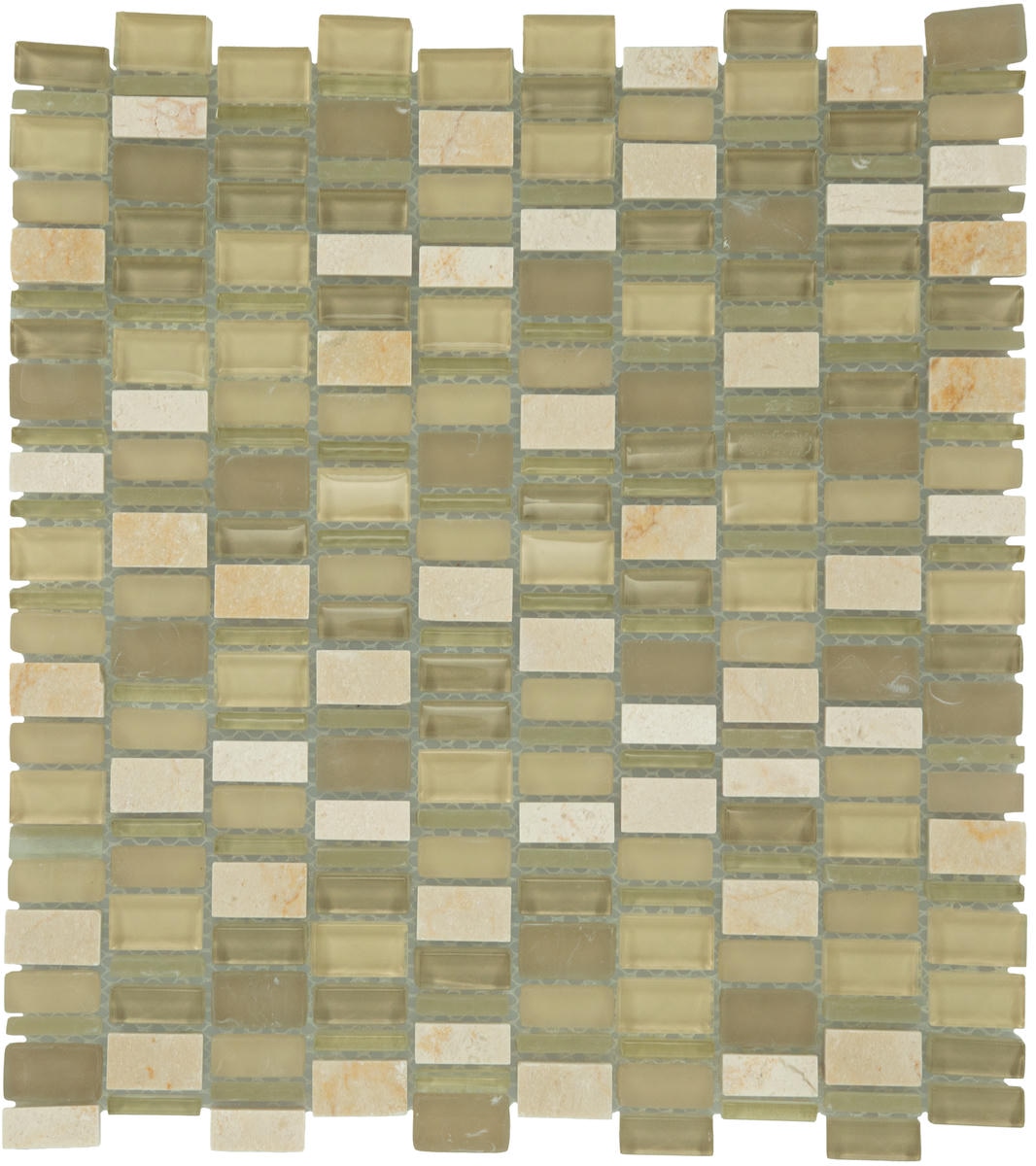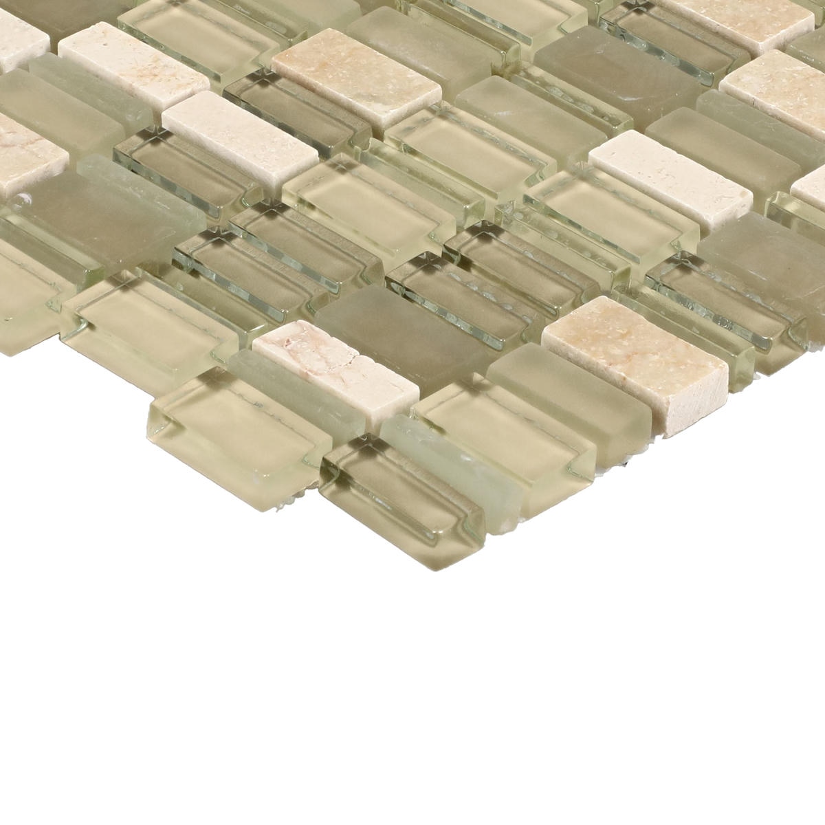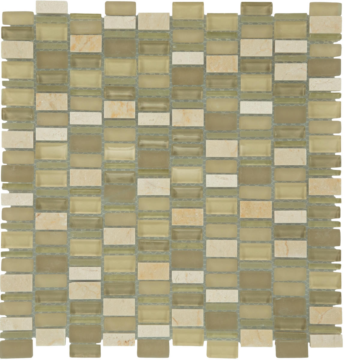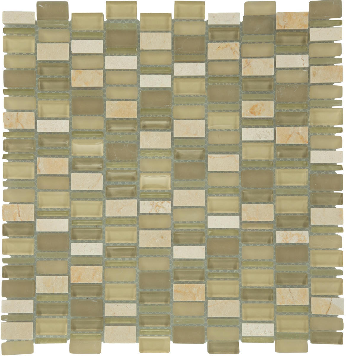 Behold the perfect pairing of sophistication and daring design. Clio™ mosaics from Daltile is a fresh blend of stone and glass in a versatile mosaic. The rich look of polished stone is randomly mixed with glass in glossy and frosted finishes. Stretch your creativity as you contemplate installing it vertically, horizontally or cut down to smaller pieces to be used as accents to another tile. Clio mosaics will win you over time and time again as you proudly admire your unique and stylish new space.