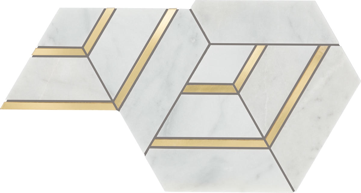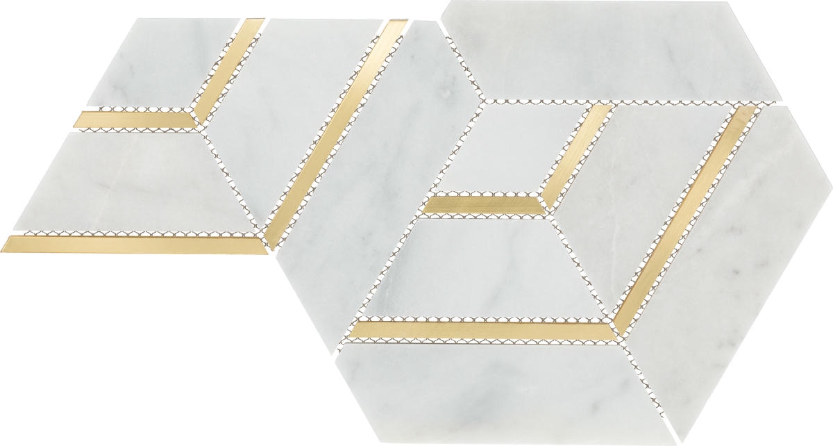 12.52″ x 14.57″ Lavaliere Alluring White/Brass Mosaic Natural Stone Tile Rectangle Intermix Honed