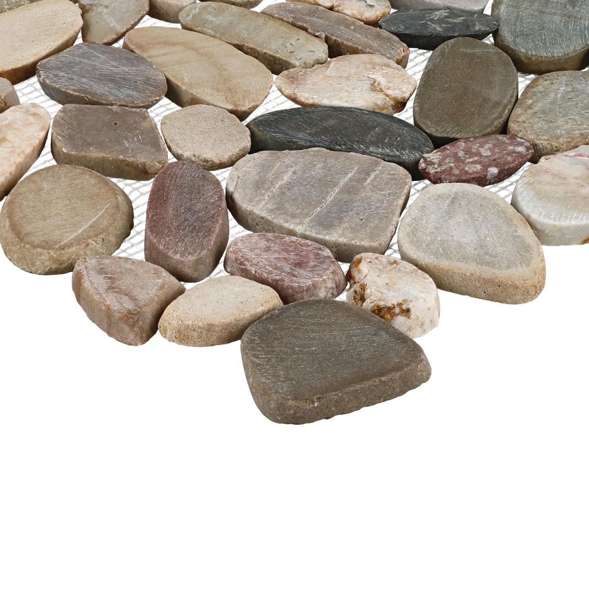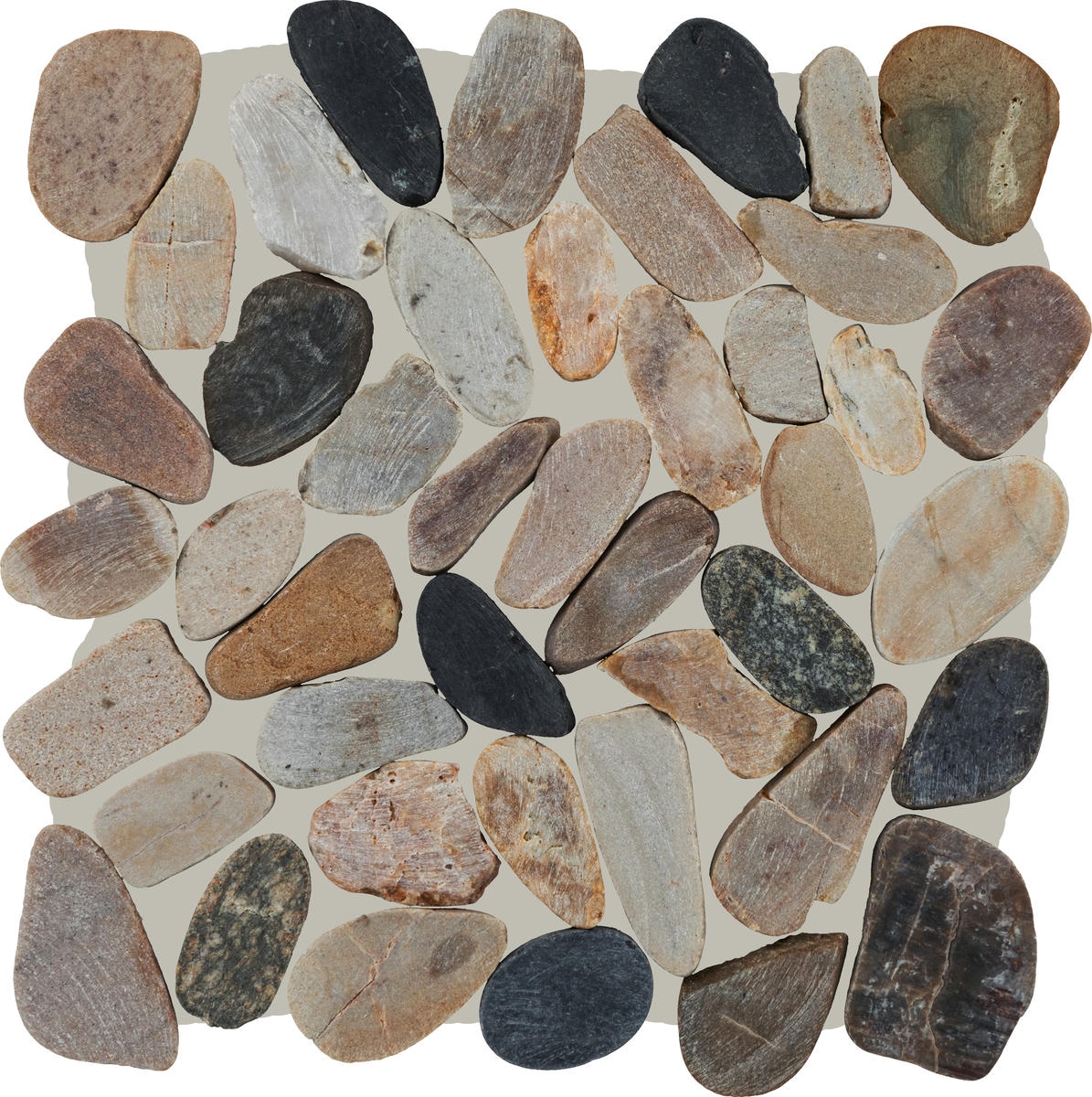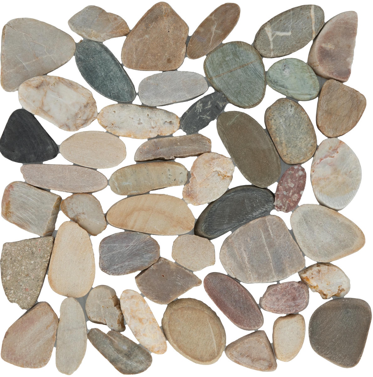 13″ x 13″ Decorative Accents Earthy Blend Mosaic Natural Stone Tile Square River Pebble Saw Cut