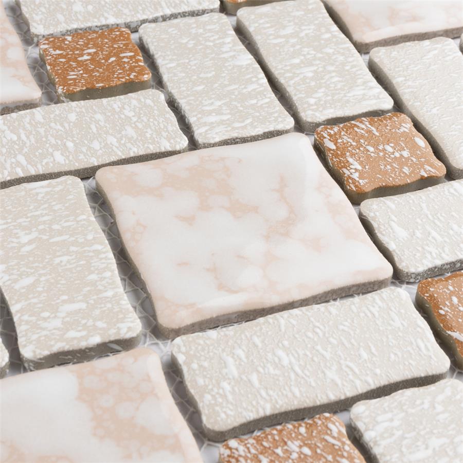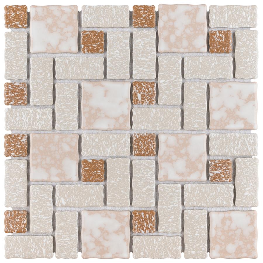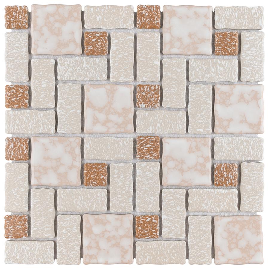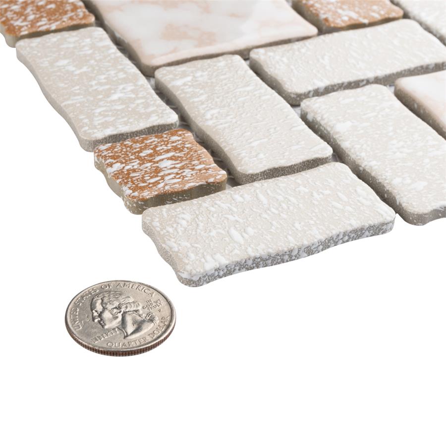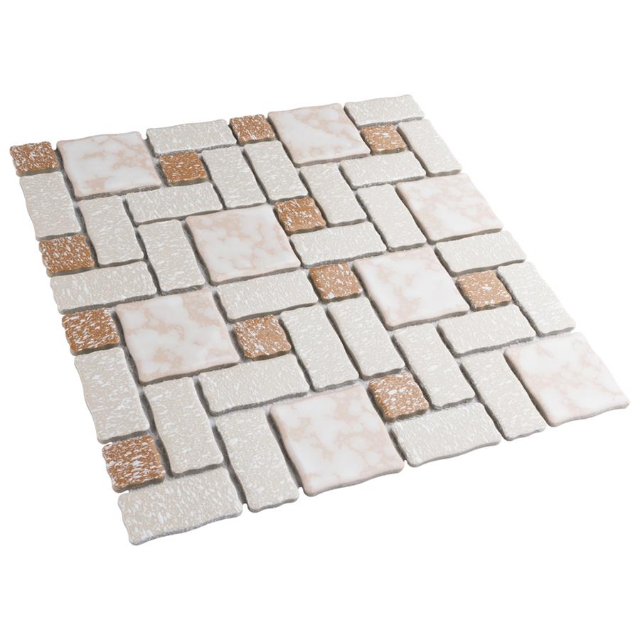 The SomerTile Academy Beige 11-3/4 in. x 11-3/4 in. x 5 mm Porcelain Mosaic Tile is reminiscent of traditional, multi-texture and multi-color porcelain mosaic floor tile. Featuring a mottled finish and muted color palette, these tiles recreate a classic look with the durability and versatility of a modern tile. Use this tile virtually anywhere, due to its frost resistance, high slip resistance and P.E.I. rating of 4.