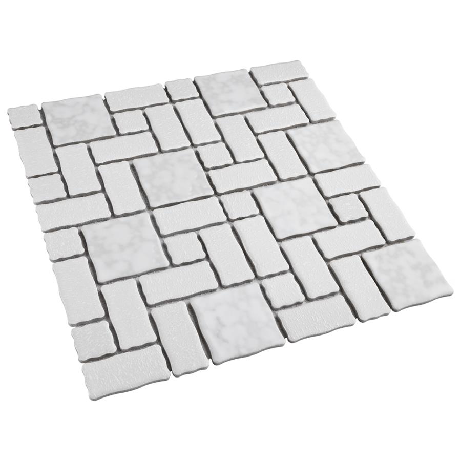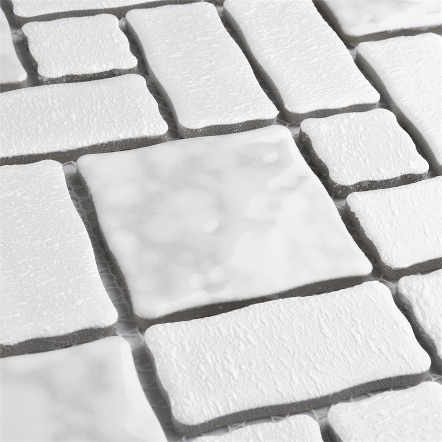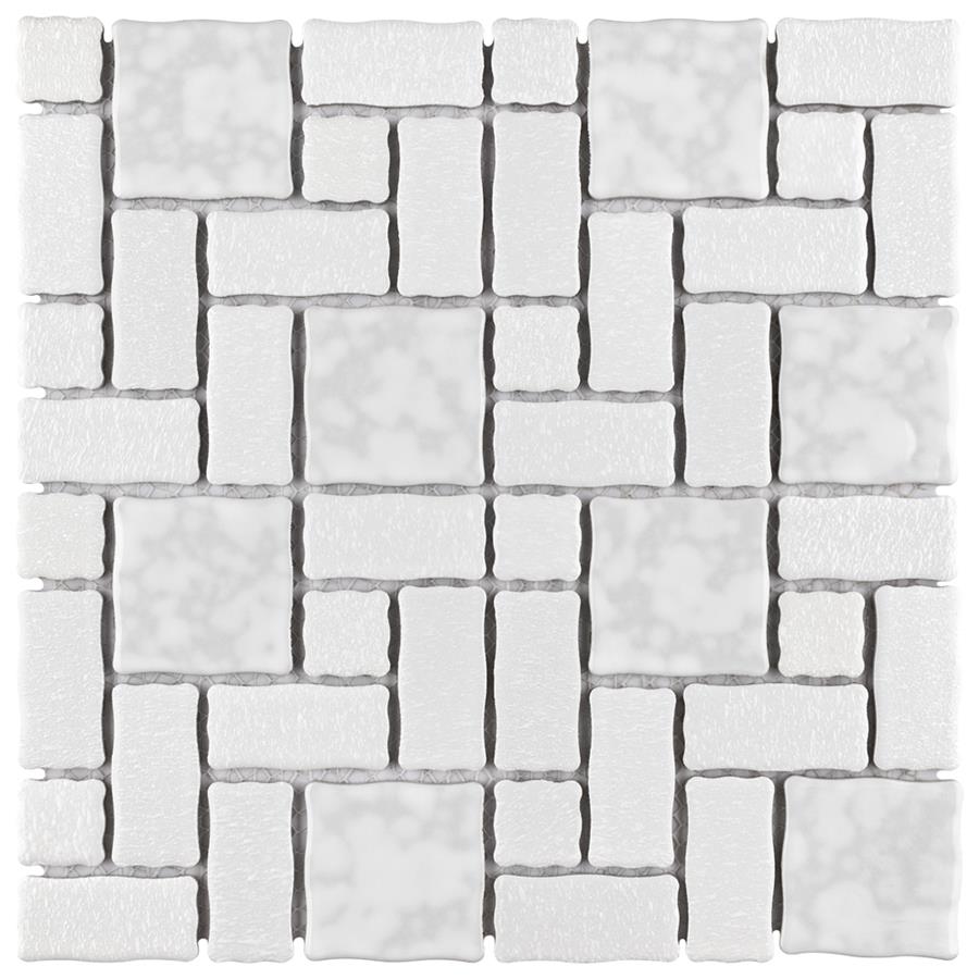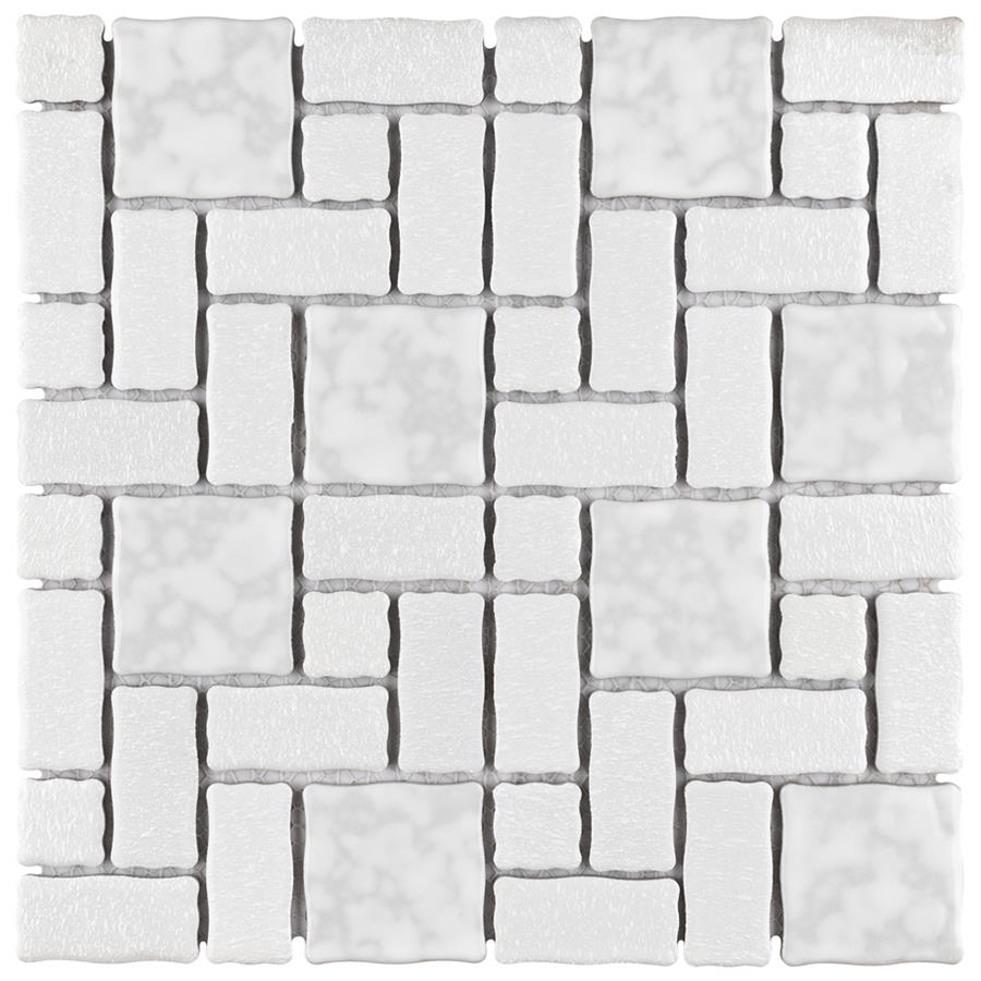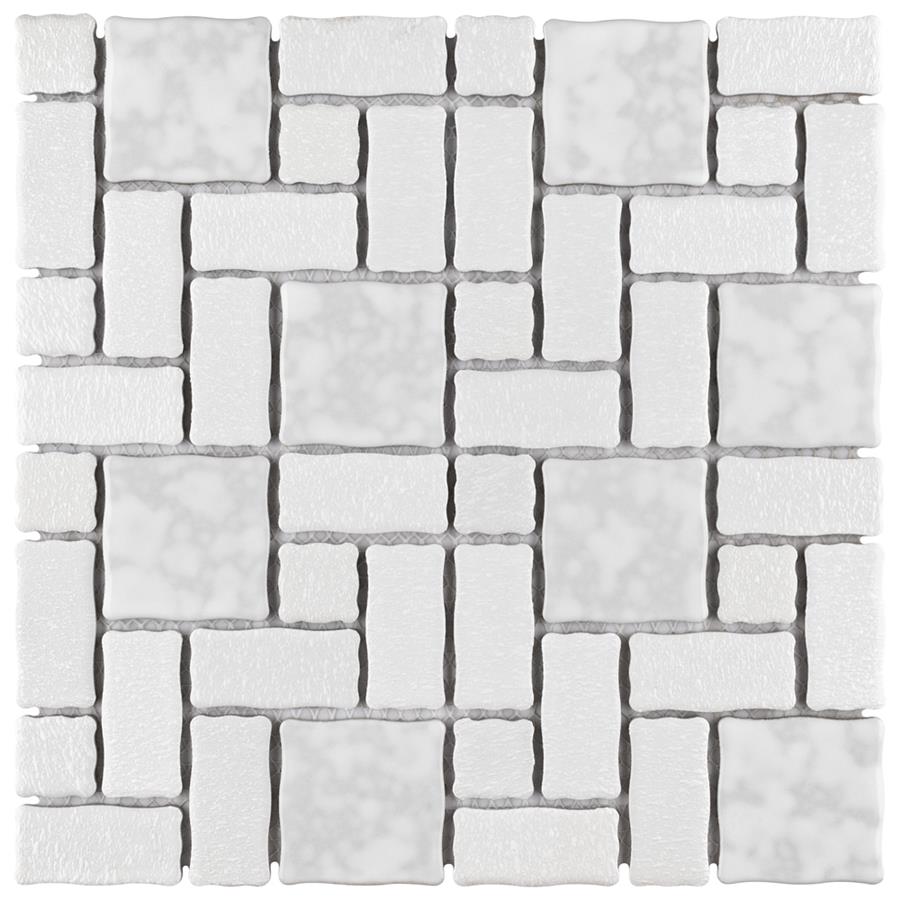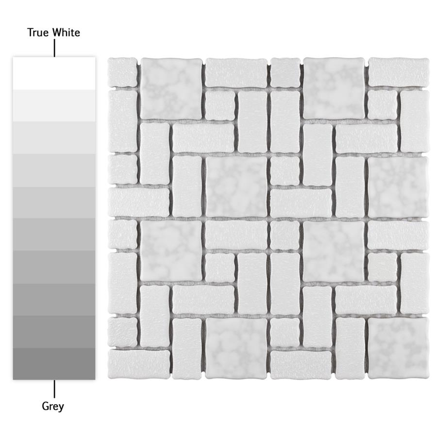 The SomerTile Academy White 11-3/4 in. x 11-3/4 in. x 5 mm Porcelain Mosaic Tile is reminiscent of traditional, multi-texture and multi-color porcelain mosaic floor tile. Featuring a mottled finish and muted color palette, these tiles recreate a classic look with the durability and versatility of a modern tile. Use this tile virtually anywhere, due to its frost resistance, high slip resistance and P.E.I. rating of 4.