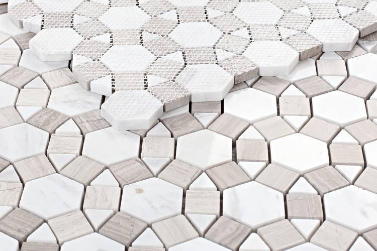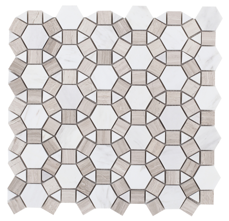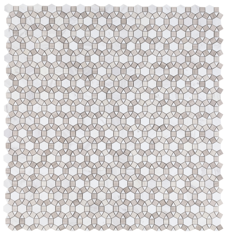 Product Sold By The SheetWhite Volakas Marble Mixed with Haisa Marble in Circle Shape. This Mosaic comes in a Polished finish.Suggested Grout Color: Bostik Trucolor White H152WARNING: This product can expose you to chemicals including crystalline silica (airborne particles of respirable size) in dust created during fabrication/installation if the product is dry cut/ground or pulverized, which are known to the State of California to cause cancer. For more information, go to https://www.p65warnings.ca.gov/.