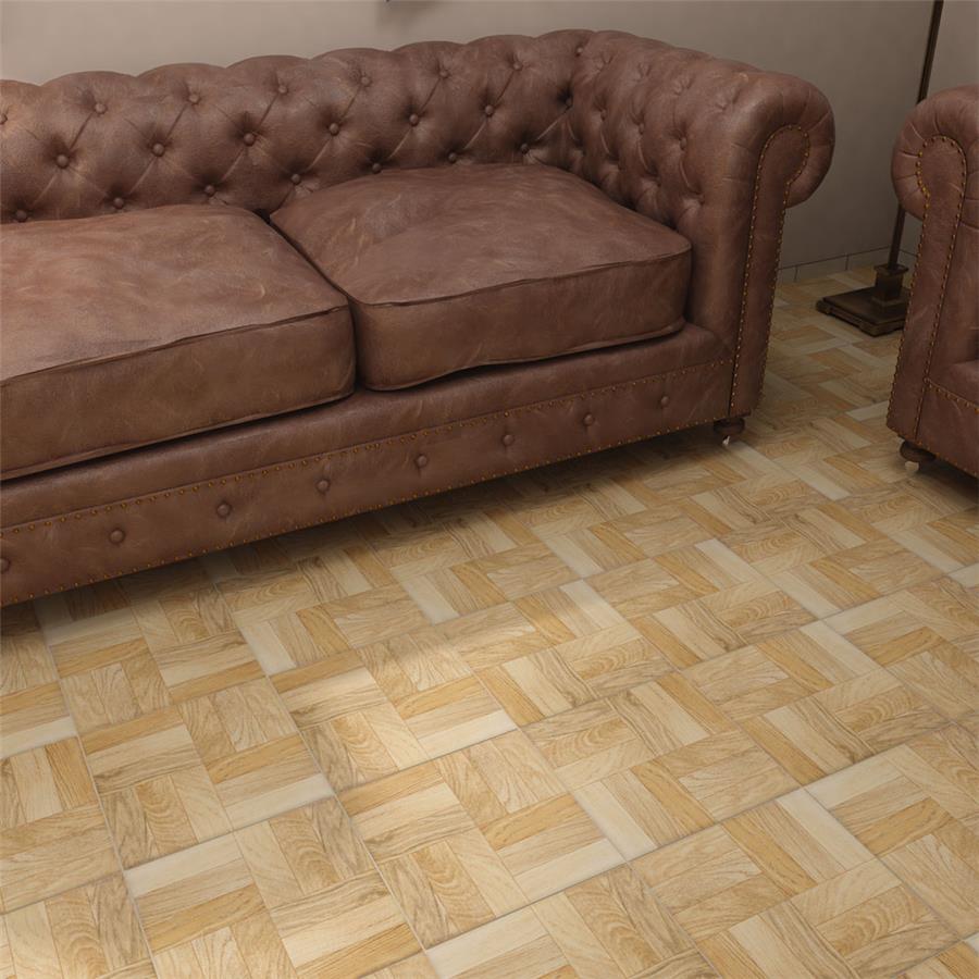 The SomerTile Alabama Natural 12 in. x 12 in. Ceramic Floor and Wall Tile features the look of parquet hardwood with a durable, easy to install tile. The natural wood grain varies between tiles and comes with a high sheen finish for added pizzazz. This non-vitreous tile is great for use in any interior living space. With a mid-level durability rating, this tile can withstand everyday living with confidence. Tile is the better choice for your space. This tile is made from natural ingredients, making it a healthy choice as it is free from allergens, VOCs, formaldehyde and PVC.