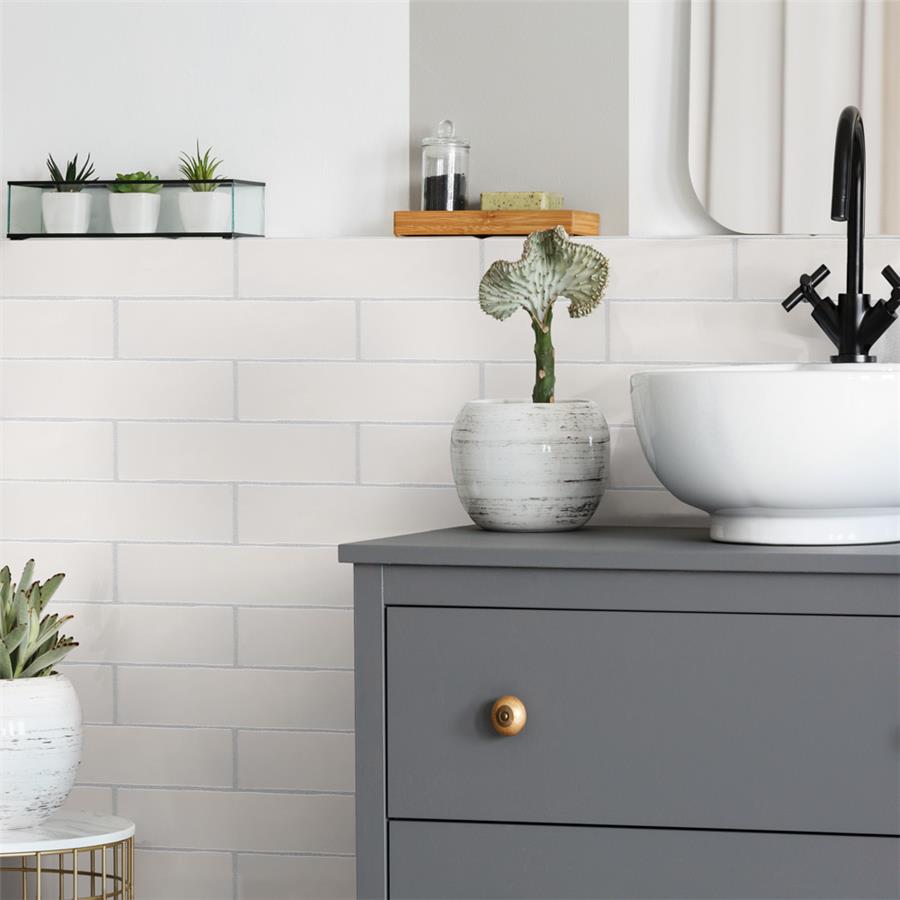 The SomerTile Alaska Craquelle White 3 in. x 12 in. Ceramic Wall Tile is a mixed collection of wall tiles featuring a creamy white glaze. They have a subtle crackle appearance within the glaze, with a smooth and glossy surface. These tiles feature a handmade-look shape, with slightly rounded edges. Pair these wall tiles with a variety of trims that match the series. It is necessary that you seal this tile before grouting to prevent the absorption of staining agents over time.Tile is the better choice for your space. This tile is made from natural ingredients, making it a healthy choice as it is free from allergens, VOCs, formaldehyde and PVC.