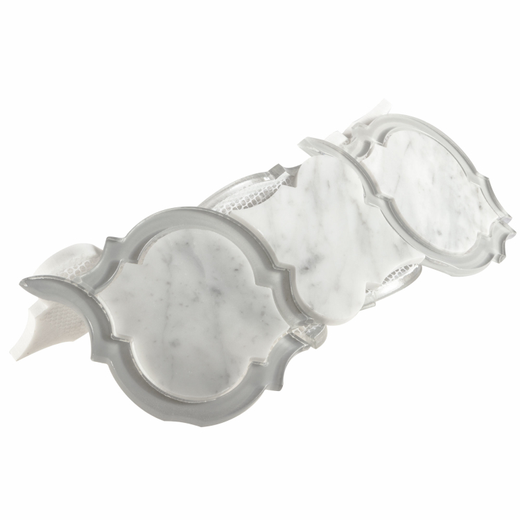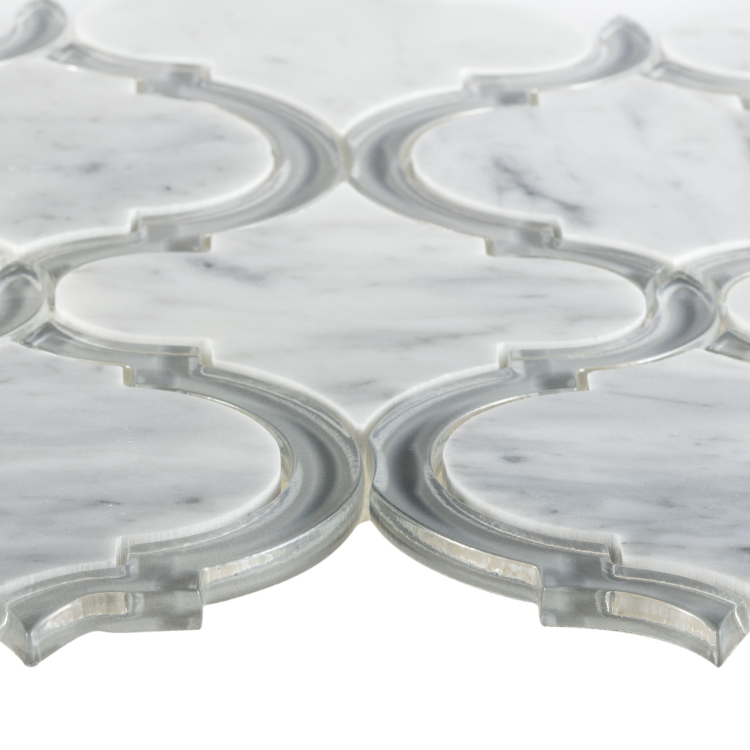 Product Sold By The SheetAlice City- Waterjet Mosaic, Carrara White Marble collected with grey glossy glass.Suggested Grout Color: Bostik Dimension Diamond H600Glass tile thin-set required. We recommend: Custom Building Products White Premium Glass Tile Thin-Set Mortar.WARNING: This product can expose you to chemicals including crystalline silica (airborne particles of respirable size) in dust created during fabrication/installation if the product is dry cut/ground or pulverized, which are known to the State of California to cause cancer. For more information, go to https://www.p65warnings.ca.gov/.
