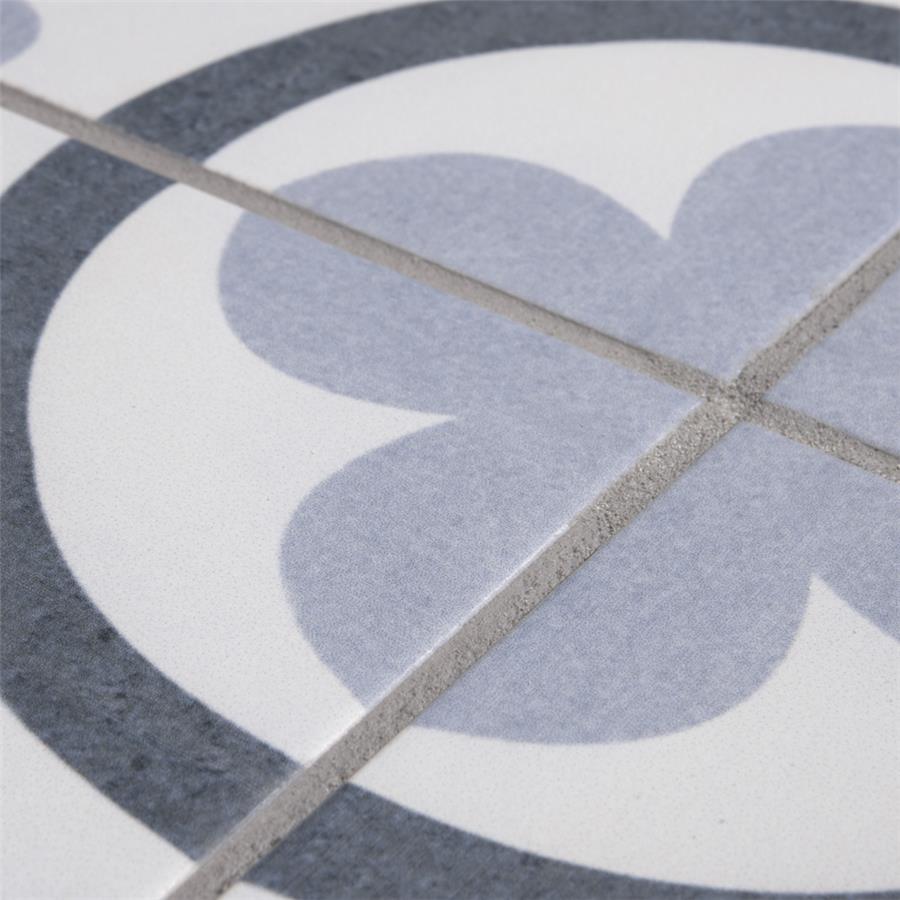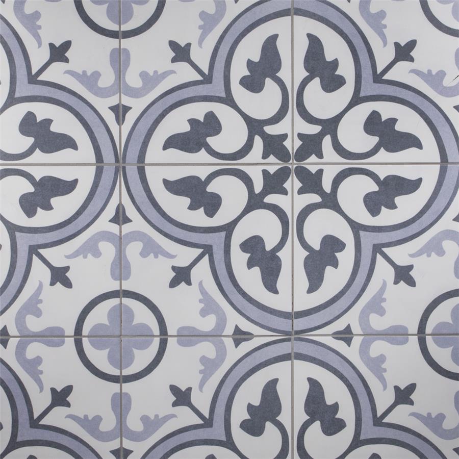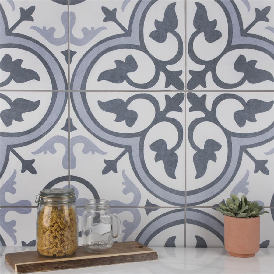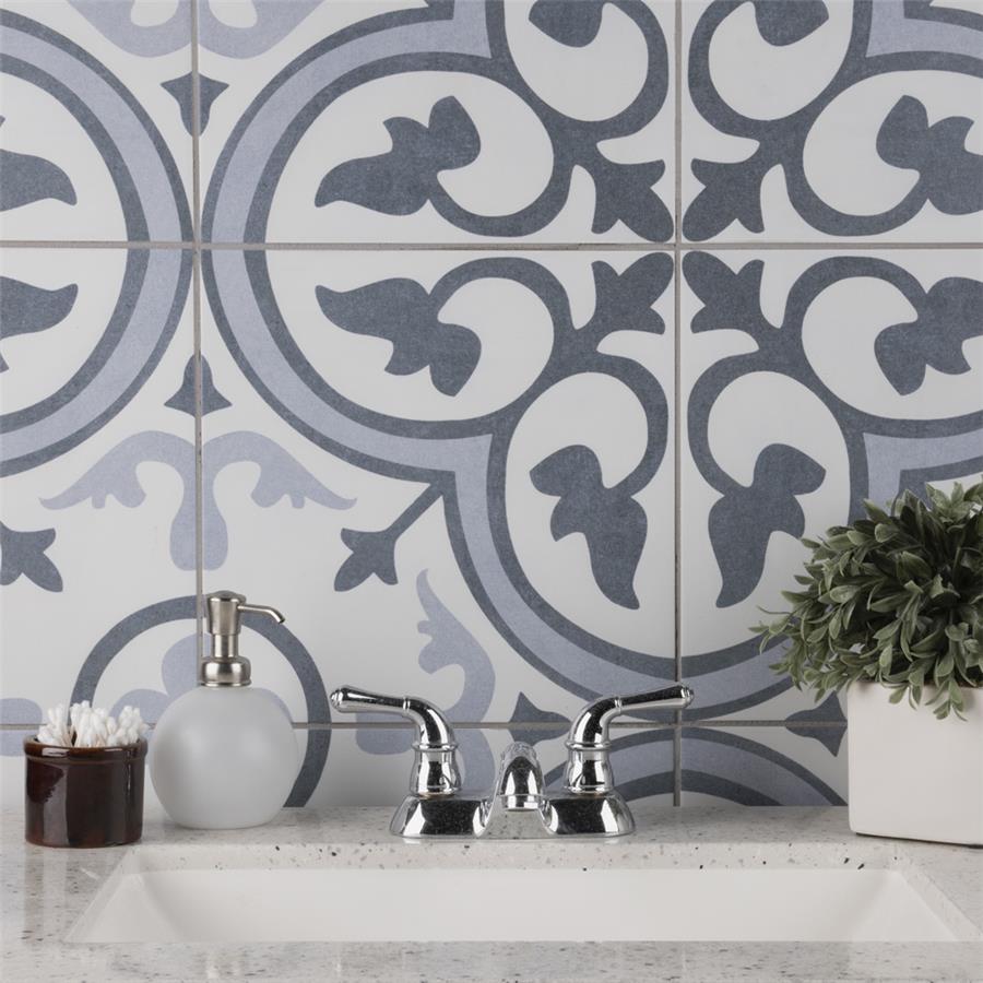 Drawing inspiration from artisan cement tiles, our Amberes Azul II 13 in. x 13 in. Ceramic Floor and Wall Tile is a gorgeous tribute to encaustic design. This ceramic tile features a large floral old-world pattern in denim blue that frames dueling blue grey arcs in the center, offering subtle contrast and dimension to the decoration. Set on a solid snow white base glaze, the contrasting design features a weathered, speckled look, replicating the beauty of its cement muse. The floral, geometric pattern blends into virtually any design theme, making this an exceptional product for modern installations and historic renovations. Offering a mid-level durability rating, this tile is an ideal choice for indoor installations, including backsplashes, bathrooms, kitchens, showers and entryways.Important:This tile features subtle pattern imperfections, which is a true nod to encaustic tile.Tile is the better choice for your space. This tile is made from natural ingredients, making it a healthy choice as it is free from allergens, VOCs, formaldehyde and PVC.