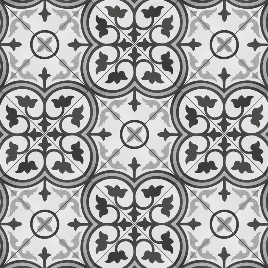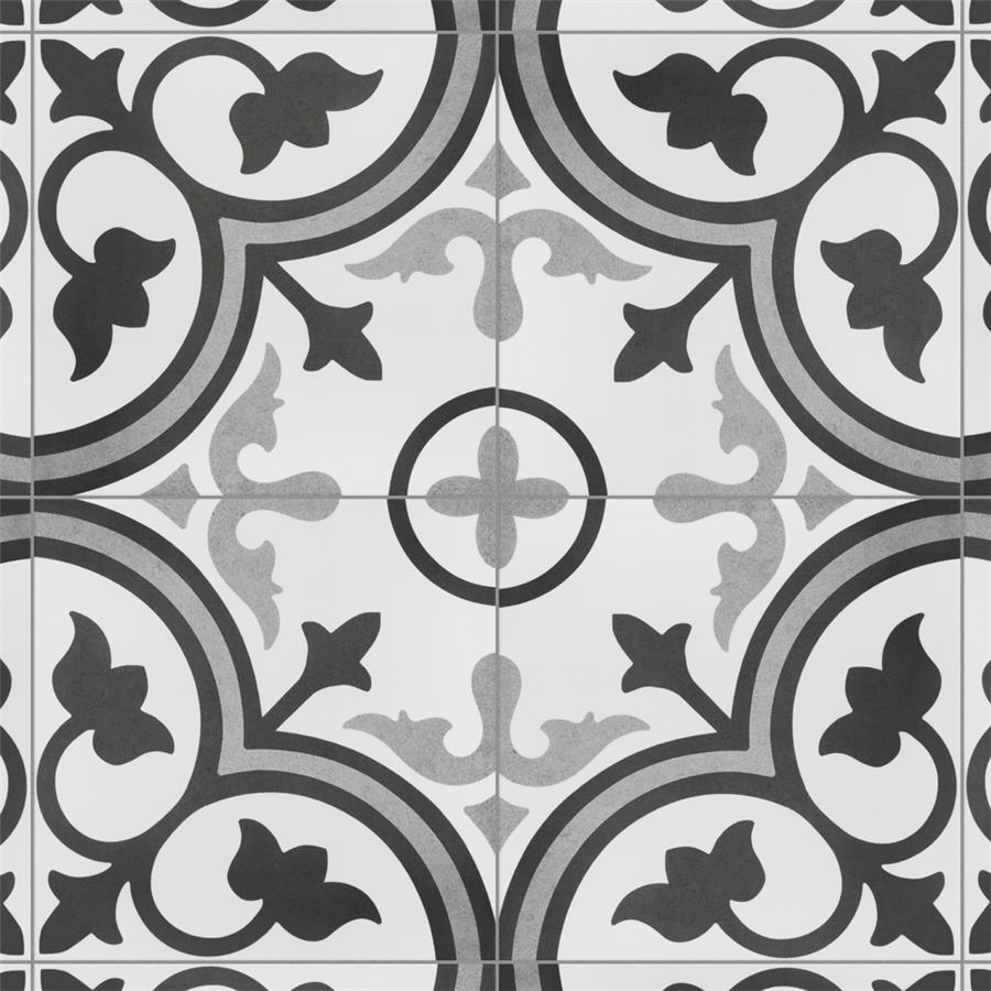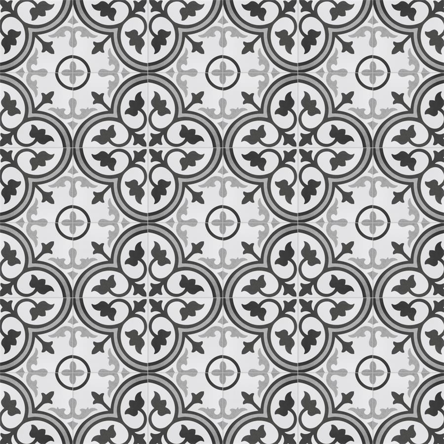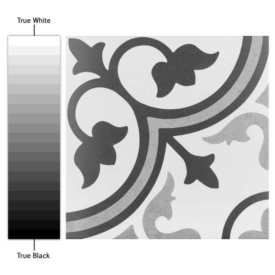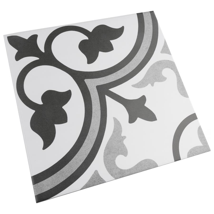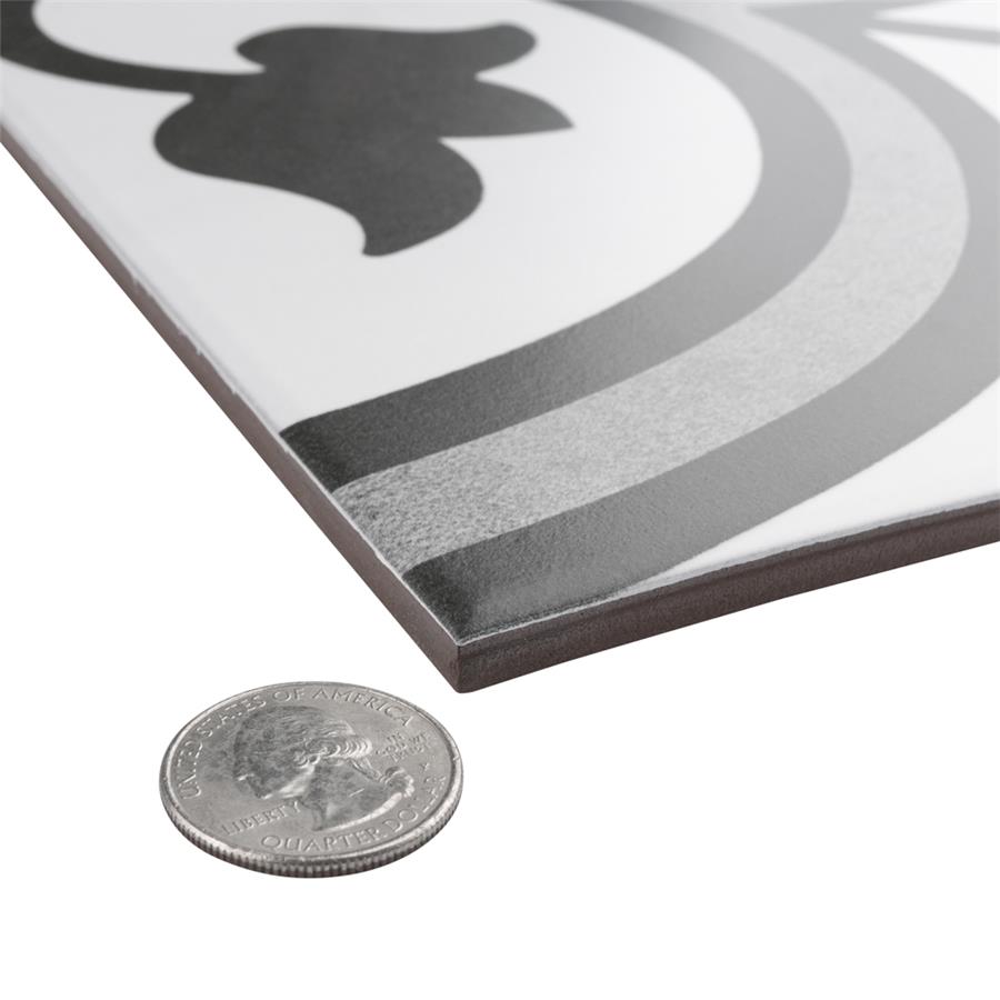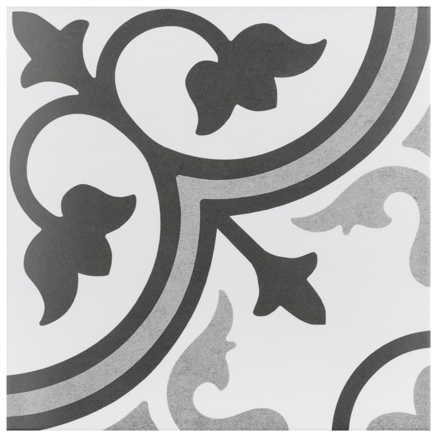 Drawing inspiration from artisan cement tiles, the SomerTile Amberes Classic Encaustic 12-1/4 in. x 12-1/4 in. Ceramic Floor and Wall Tile is a gorgeous tribute to encaustic design. This ceramic tile features a large floral old-world pattern in charcoal grey that frames dueling ash grey arcs in the center, offering subtle contrast and dimension to the decoration. Set on a solid snow white base glaze, the contrasting design features a weathered, speckled look, replicating the beauty of its cement muse. The floral, geometric pattern blends into virtually any design theme, making this an exceptional product for modern installations and historic renovations. Offering a mid-level durability rating, this tile is great for adding a dramatic look to most interiors spaces including showers, kitchens, entryways and backsplashes.Tile is the better choice for your space. This tile is made from natural ingredients, making it a healthy choice as it is free from allergens, VOCs, formaldehyde and PVC.