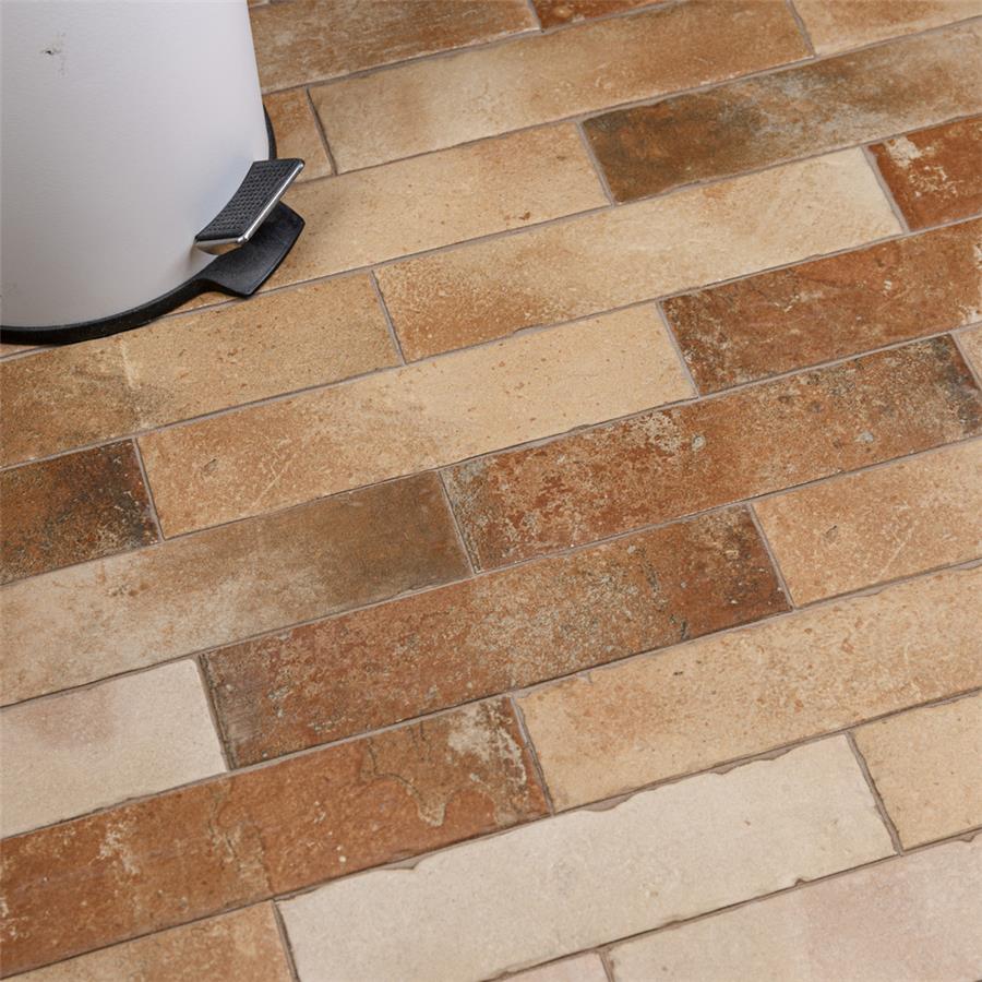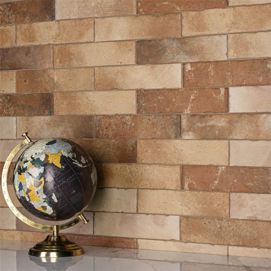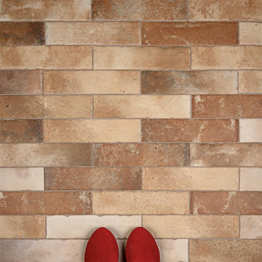 Bring a colonial feel to your present-day style home with our Americana Boston Brick North East 2-1/2 in. x 10 in. Porcelain Floor and Wall Tile. With slight variation along the edges, this extruded porcelain tile offers a one-of-a-kind look that can only be achieved through a partially handmade process. Varying tones of ochre and sepia set the backdrop for this stone-look brick format tile, ensuring no two looks will ever be the same. This tile offers endless design possibilities and is a perfect choice on its own or coordinated with other products in the Americana series. Its impervious and frost resistant features make this an ideal choice for indoor and outdoor installations including, kitchens, bathrooms and patios.Tile is the better choice for your space. This tile is made from natural ingredients, making it a healthy choice as it is free from allergens, VOCs, formaldehyde and PVC.