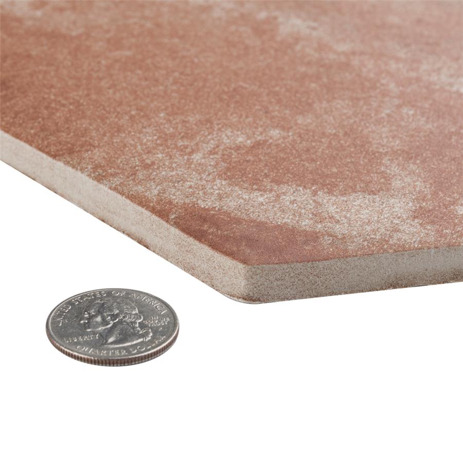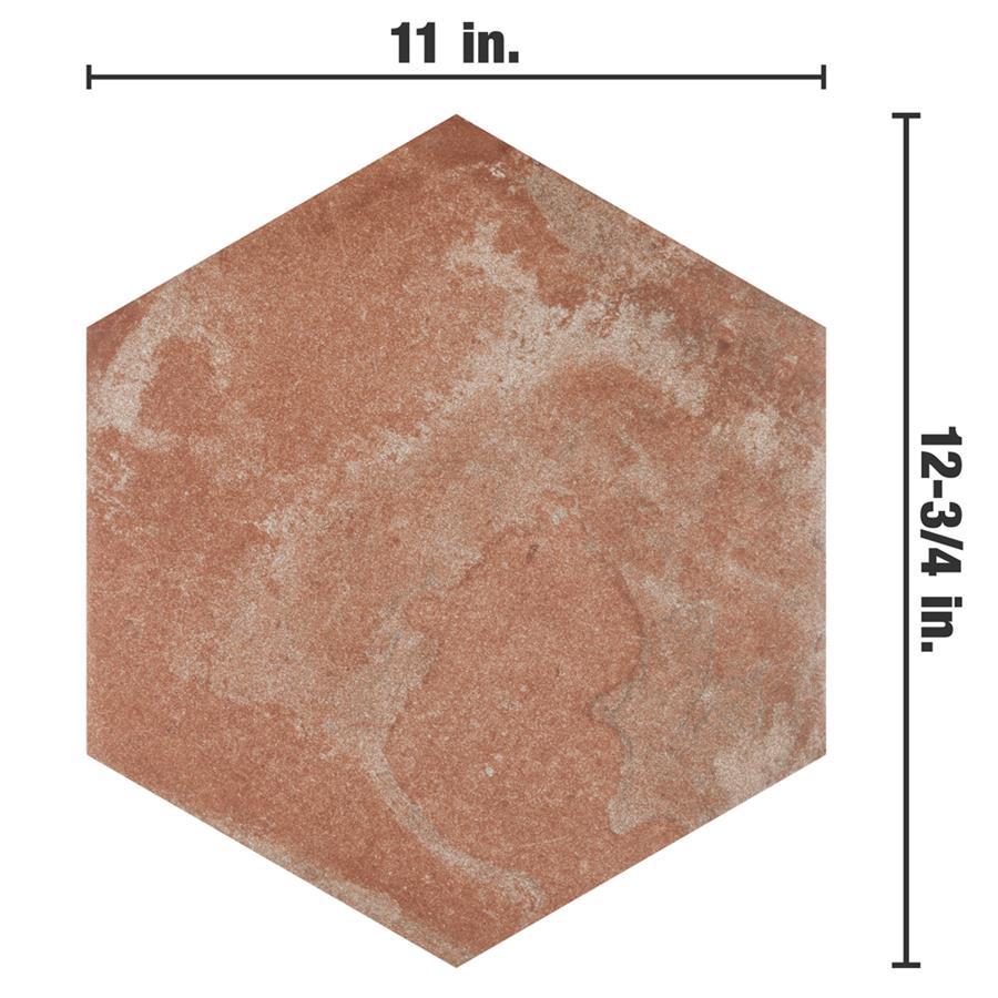 Bring a colonial feel to your present-day style home with our Americana Boston North End Hex 11 in. x 12-3/4 in. Porcelain Floor and Wall Tile. With slight variation along the edges, this extruded porcelain tile offers a one-of-a-kind look that can only be achieved through a partially handmade process. Varying tones of ochre and sepia set the backdrop for this stone-look hexagon format tile, ensuring no two looks will ever be the same. This tile offers endless design possibilities and is a perfect choice on its own or coordinated with other products in the Americana series. Its impervious and frost resistant features make this an ideal choice for indoor and outdoor installations including, kitchens, bathrooms and patios.Tile is the better choice for your space. This tile is made from natural ingredients, making it a healthy choice as it is free from allergens, VOCs, formaldehyde and PVC.