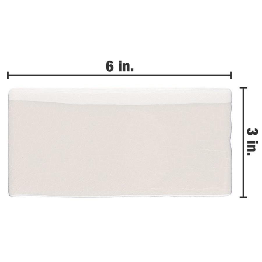 The SomerTile Antic Craquelle White 3 in. x 6 in. Ceramic Bullnose Wall Trim Tile is a wall trim tile that features a beautiful creamy white glaze and a smooth and glossy surface. The subtle crackle appearance within the glaze creates stunning visual interest. This tile features uneven, slightly round edges for a handmade-look. The active glaze on this tile makes every piece unique, so you will never have two that are exactly the same.Use this bullnose trim with many of our other products, including those in the Antic Collection to complete an elegant look. Please note it is necessary that you seal this tile before grouting to prevent the absorption of staining agents over time. This tile is suitable for indoor wall use only.