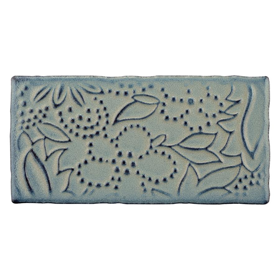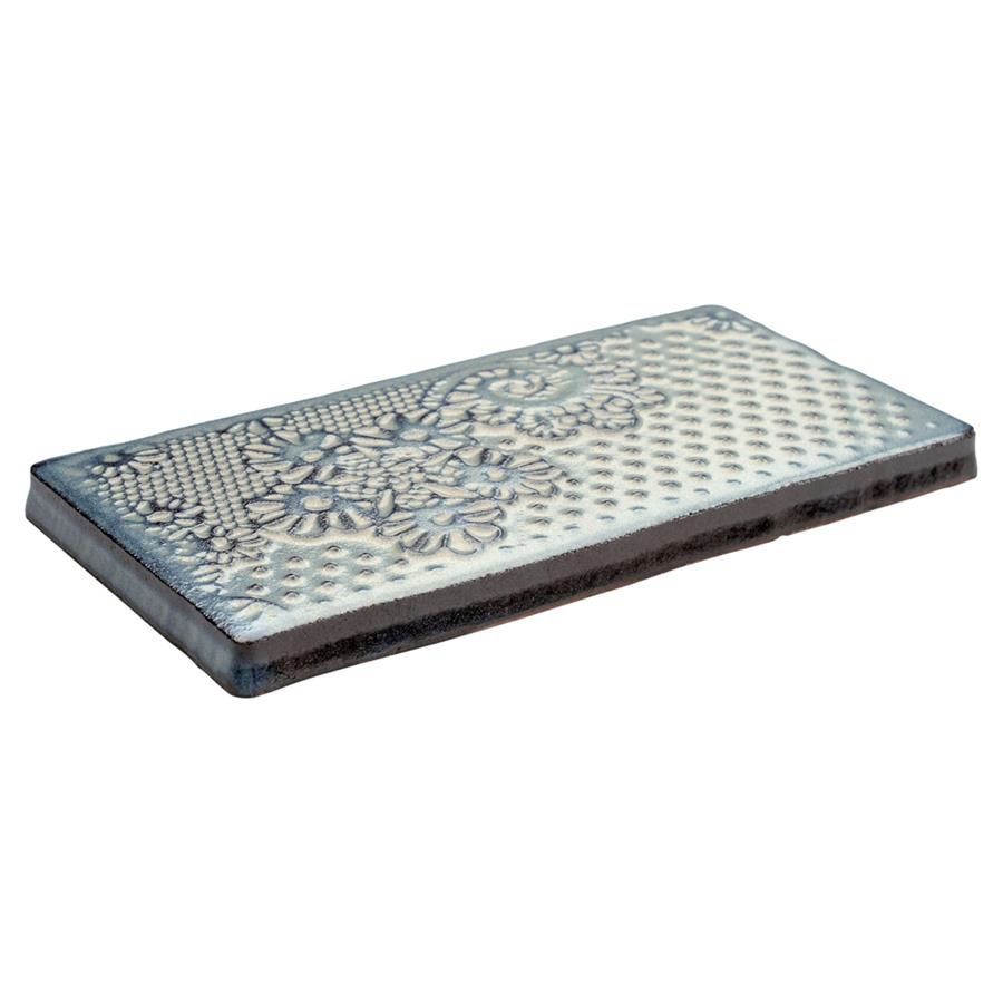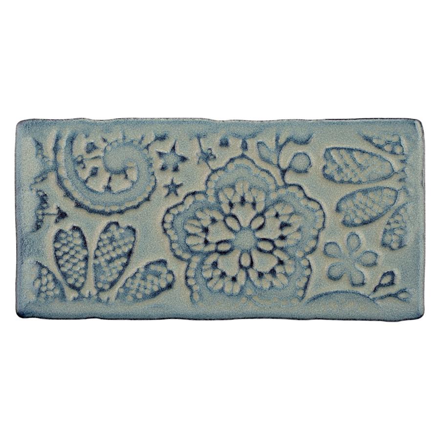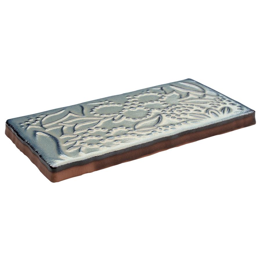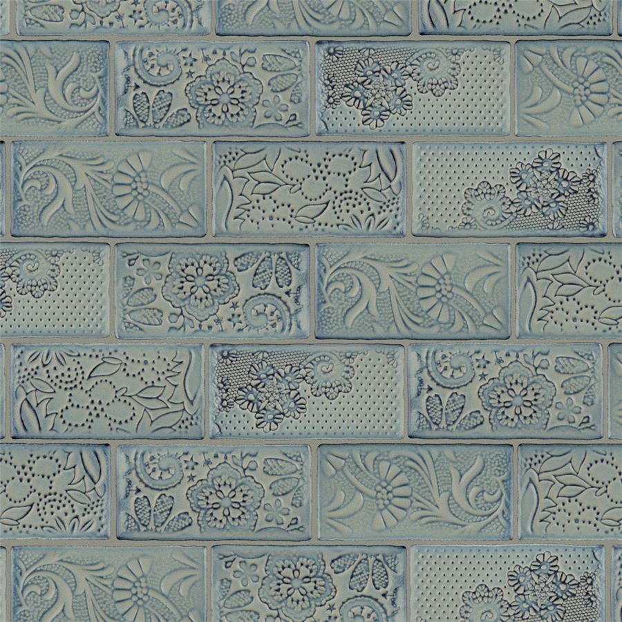 Bring unique vintage accents to your home with the SomerTile Antic Feelings Griggio 3 in. x 6 in. Ceramic Wall Tile. These embossed floral subway tiles feature uneven edges for a handmade look. There are up to four varieties of unique floral and lace patterns for endless design possibilities. The unique coloring, which features shades of slate gray and gradually darkens to navy and brown around the edges, creates a rustic look. These satin tiles feature a bisque finish that shows the red ceramic mixed with shades of blue on the raised pattern. The reactive glaze on this tile makes every piece unique, so you will never have two that are exactly the same. This reactive glazing technique may cause high variation between dye lots. Please expect variation in color between orders and from what is pictured. Use these subway tiles as an accent with many of our other products, including those in the Antic collection, to complete an elegant look.Reminder: Each pack contains a random mix of tiles. The mix may not contain all 4 patterns.