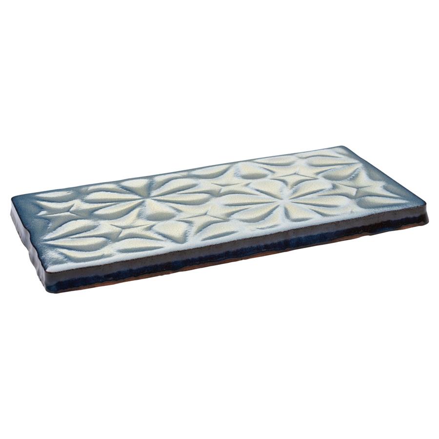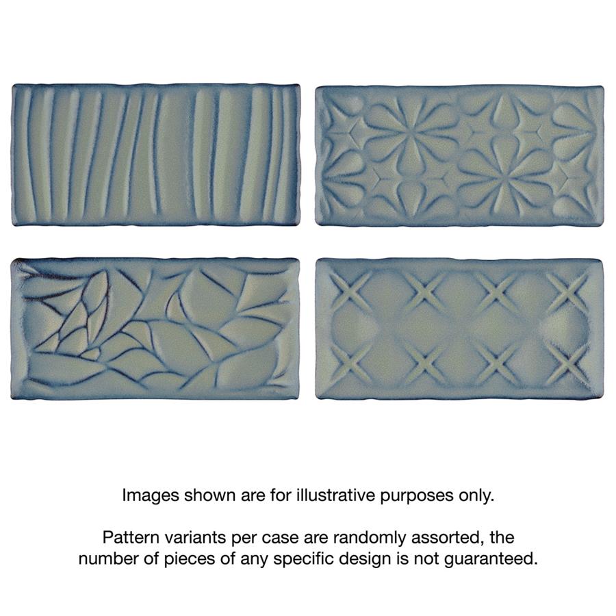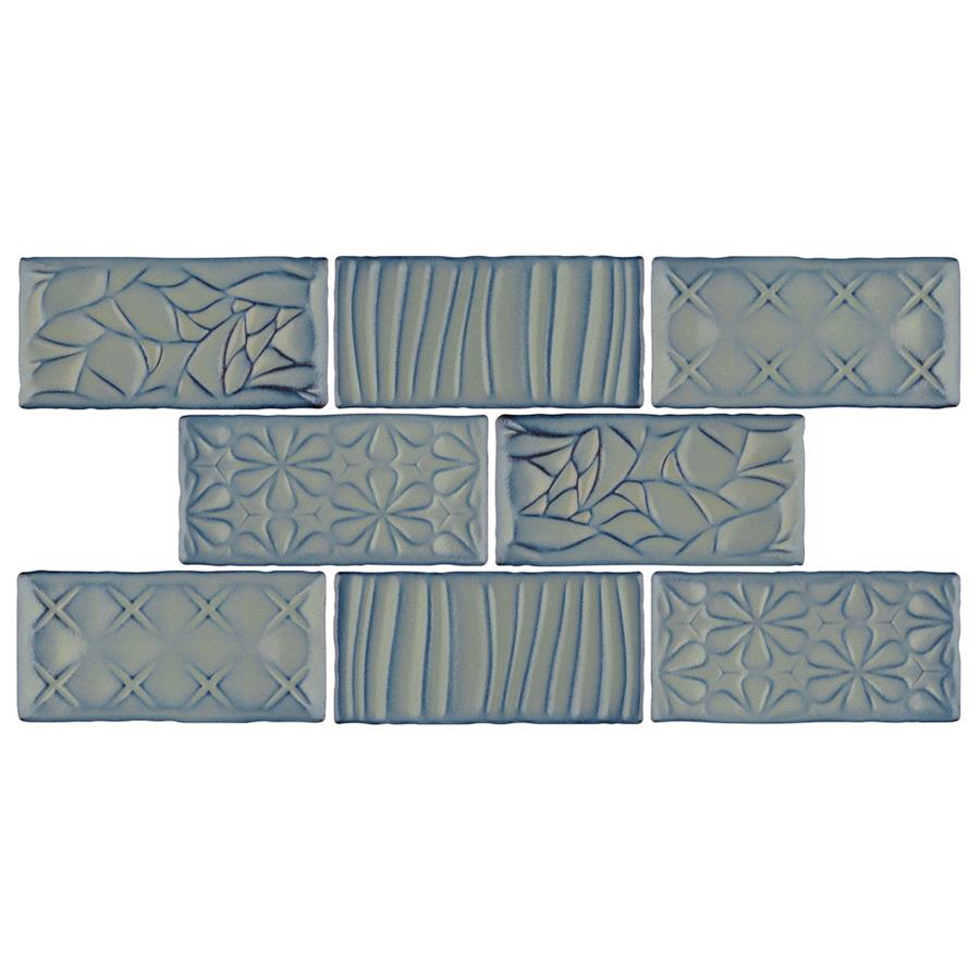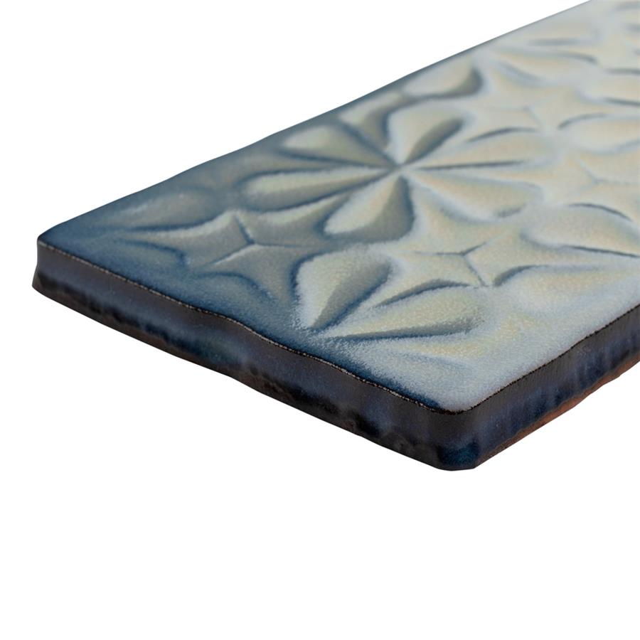 Bring unique modern accents to your home with the SomerTile Antic Sensations Griggio 3 in. x 6 in. Ceramic Wall Tile. These embossed floral subway tiles feature uneven edges for a handmade look. There are up to four varieties of unique contemporary geometric patterns for endless design possibilities. The unique coloring, which features shades of slate gray and gradually darkens to navy and brown around the edges, creates a rustic look. These satin tiles feature a bisque finish that shows the red ceramic mixed with shades of blue on the raised pattern. The reactive glaze on this tile makes every piece unique, so you will never have two that are exactly the same. This reactive glazing technique may cause high variation between dye lots. Please expect variation in color between orders and from what is pictured. Use these subway tiles as an accent with many of our other products, including those in the Antic collection, to complete an elegant look.