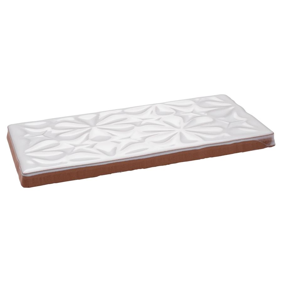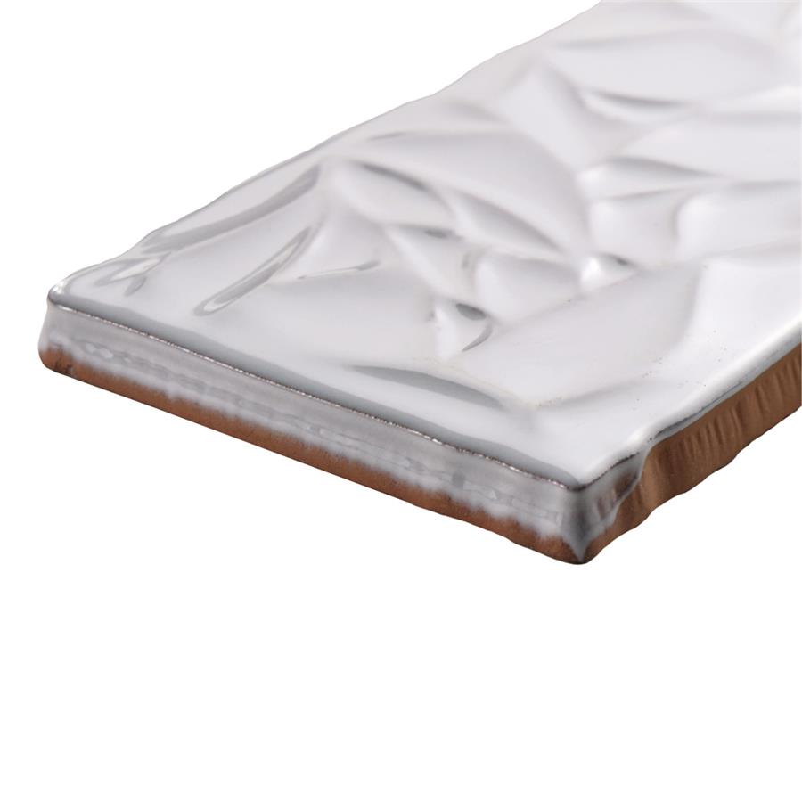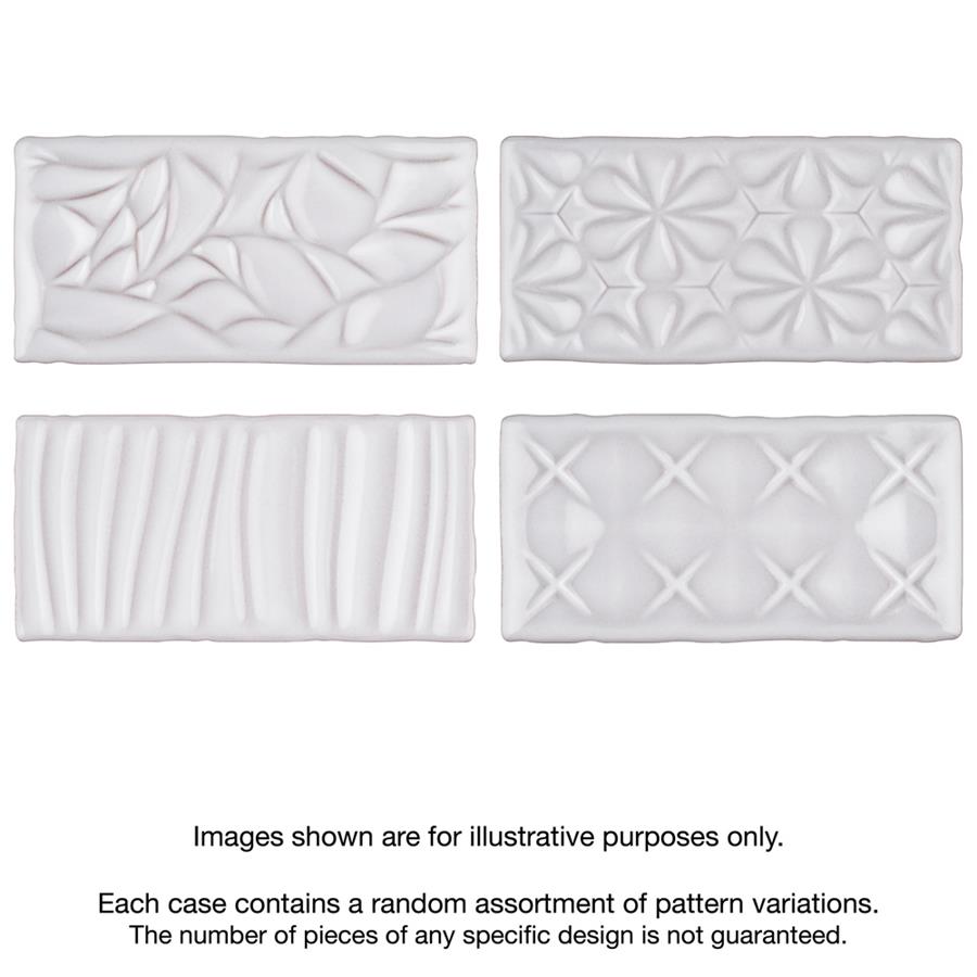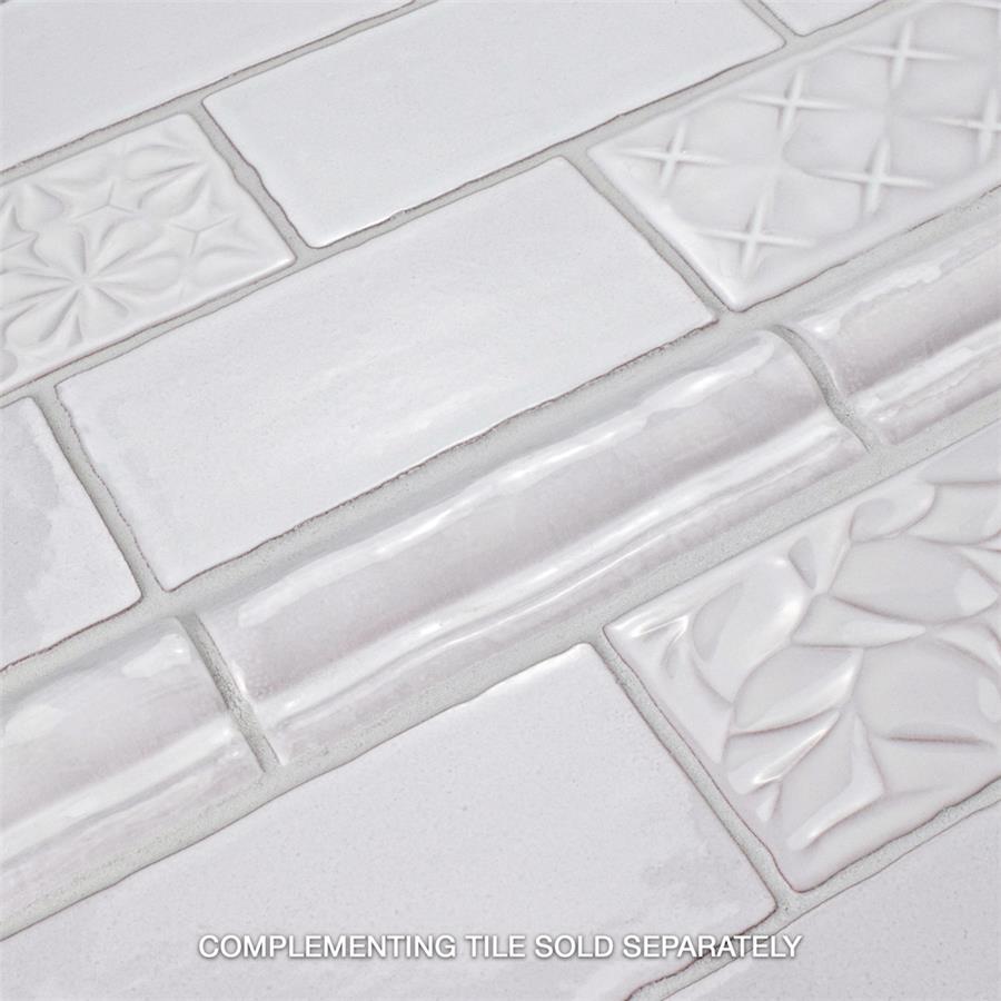 Bring unique modern accents to your home with the SomerTile Antic Sensations Milk 3 in. x 6 in. Ceramic Wall Tile. These embossed floral subway tiles feature uneven edges for a handmade look. There are up to four varieties of unique contemporary geometric patterns for endless design possibilities. The unique coloring features a milk white color and a glossy bisque finish that shows the red ceramic on the raised pattern and on the edges. The combination of the satin finish and the visible red clay gives this piece a rustic look. The reactive glaze on this tile makes every piece unique, so you will never have two that are exactly the same. This reactive glazing technique may cause high variation between dye lots. Please expect variation in color between orders and from what is pictured. Use these subway tiles as an accent with many of our other products, including those in the Antic collection, to complete an elegant look.