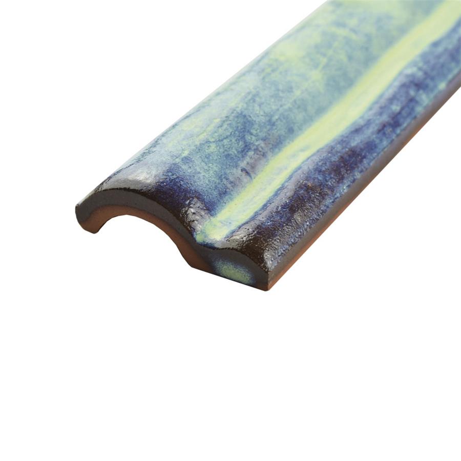 Bring unique vintage accents to your home with the SomerTile Antic Special Agua Marina 2 in. x 6 in. Ceramic Moldura Wall Trim Tile. This satin trim piece features an uneven surface for added dimension and design. The unique coloring, which features different shades of vibrant mint and gradually darken to teal, navy, and then brown around the edges, creates a rustic look. The reactive glaze on this tile makes every piece unique, so you will never have two that are exactly the same. This reactive glazing technique may cause high variation between dye lots. Please expect variation in color between orders and from what is pictured. Use this trim alongside many different products, including those in the Antic series.