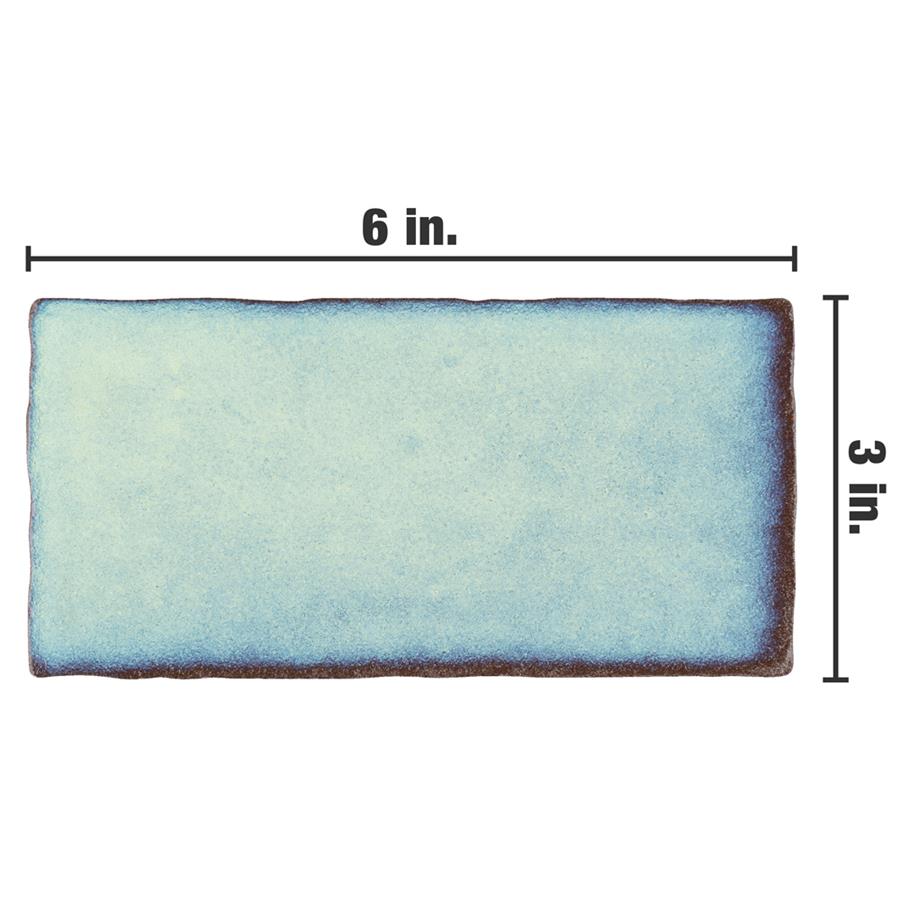 Bring unique vintage accents to your home with the SomerTile Antic Special Agua Marina 3 in. x 6 in. Ceramic Wall Tile. These smooth subway tiles feature uneven edges for a handmade look. The unique coloring, which features different shades of vibrant mint and gradually darkens to teal, navy, and then brown around the edges, creates a rustic look. These satin tiles feature slight variation in surface for added depth. The reactive glaze on this tile makes every piece unique, so you will never have two that are exactly the same. This reactive glazing technique may cause high variation between dye lots. Please expect variation in color between orders and from what is pictured. Use these subway tiles with many of our other products, including those in the Antic collection, to complete an elegant look.