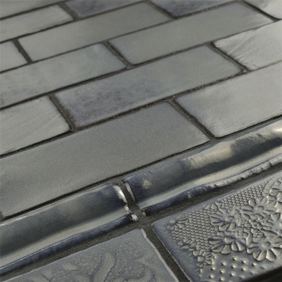 Bring unique vintage accents to your home with the SomerTile Antic Special Griggio 2 in. x 6 in. Ceramic Moldura Wall Trim Tile. This satin trim piece features an uneven surface for added dimension and design. The unique coloring, which features different shades of slate gray and gradually darkens to navy and brown around the edges, creates a rustic look. The reactive glaze on this tile makes every piece unique, so you will never have two that are exactly the same. This reactive glazing technique may cause high variation between dye lots. Please expect variation in color between orders and from what is pictured. Use this trim alongside many different products, including those in the Antic series.