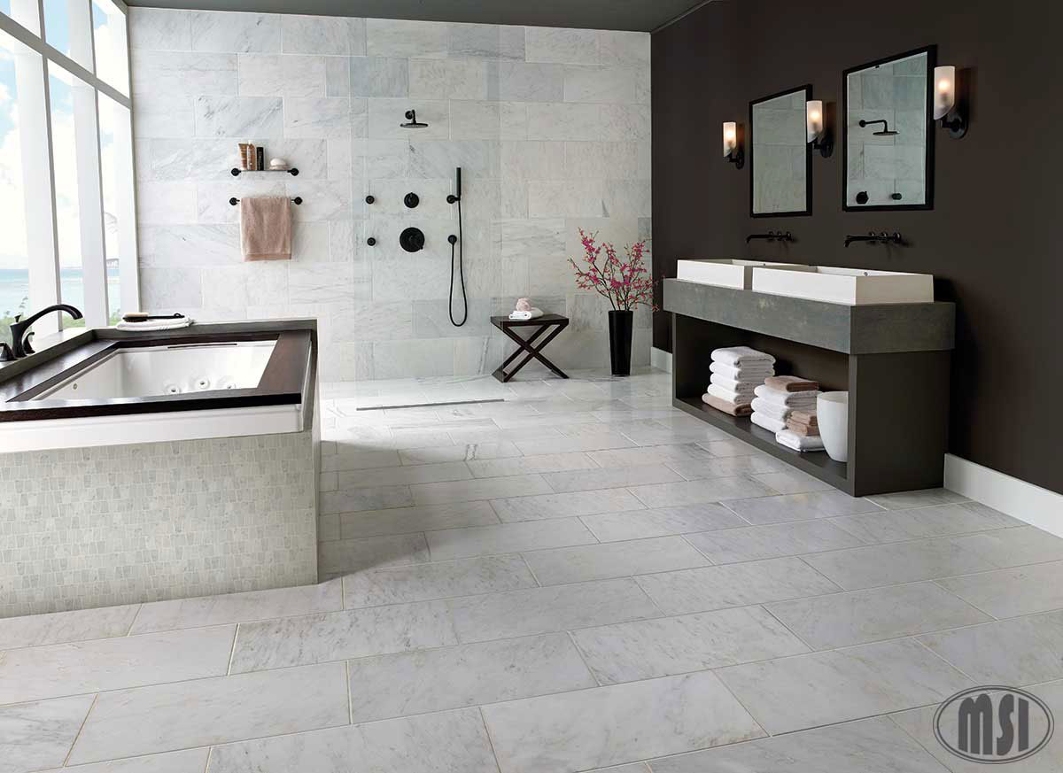 Arabescato Carrara marble is an exquisite combination of soft whites and dusty grays that swirl together in a timeless marble pattern. Create beautiful marble countertops, shower surrounds, accent walls, and other design features throughout homes and commercial properties. In addition to slabs, Arabescato Carrara white marble is available in a wide array of coordinating white tile featuring patterns, octagons, mosaics and more.Flooring Info:Residential: YesCommercial: Yes