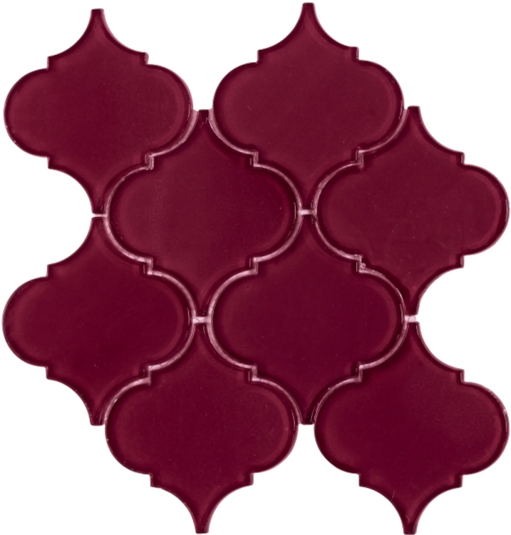 Product Sold By The SheetWater jet mosaic: Purple red shining glass in arabesque shape.Suggested Grout Color: Bostik Dimension Diamond H600WARNING: This product can expose you to chemicals including crystalline silica (airborne particles of respirable size) in dust created during fabrication/installation if the product is dry cut/ground or pulverized, which are known to the State of California to cause cancer. For more information, go to https://www.p65warnings.ca.gov/.