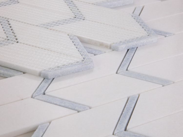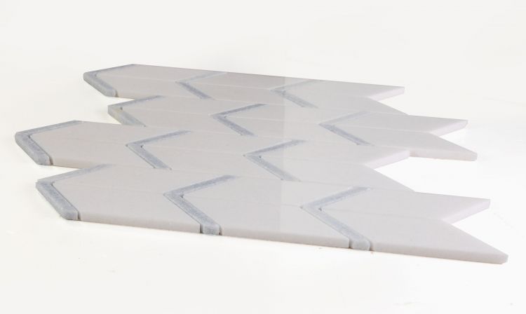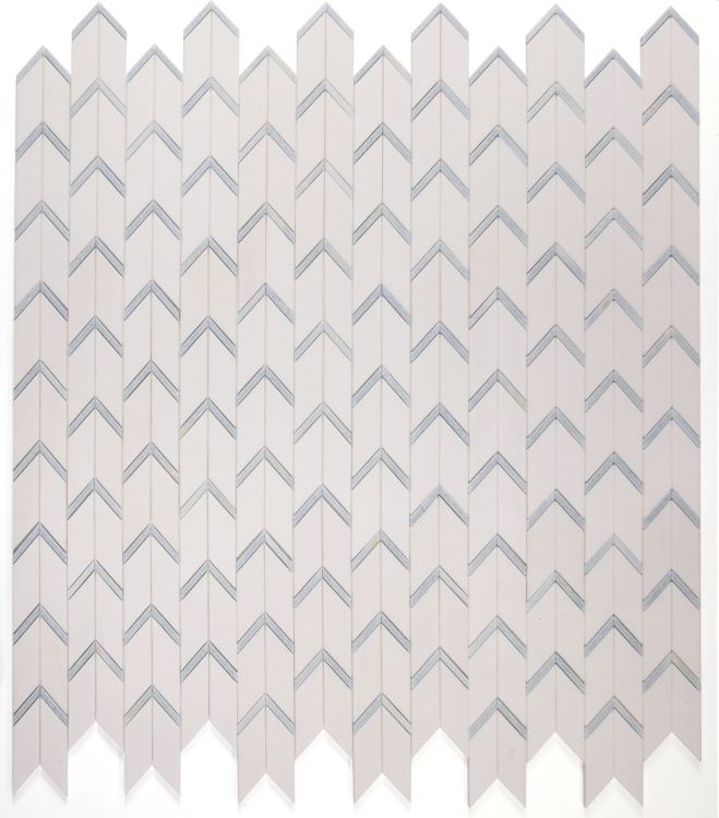 Product Sold By The SheetPrecious Stone series: Arrow Sky 12×12.75 – A combination of Thassos marble and Blue crystal mosaic that creates an alternating Arrow effect.Suggested Grout Color: Bostik Trucolor White H152WARNING: This product can expose you to chemicals including crystalline silica (airborne particles of respirable size) in dust created during fabrication/installation if the product is dry cut/ground or pulverized, which are known to the State of California to cause cancer. For more information, go to https://www.p65warnings.ca.gov/.