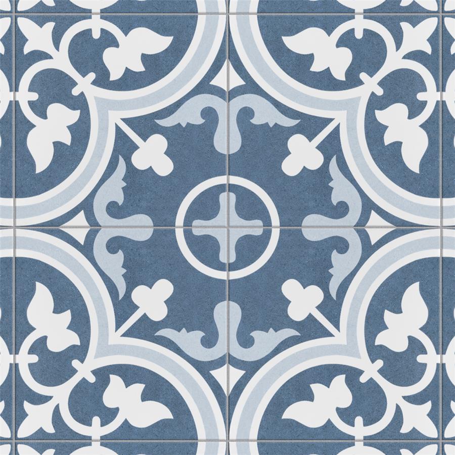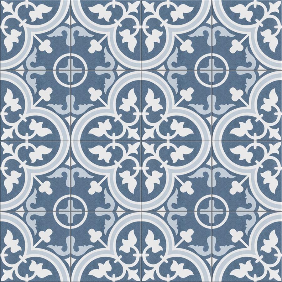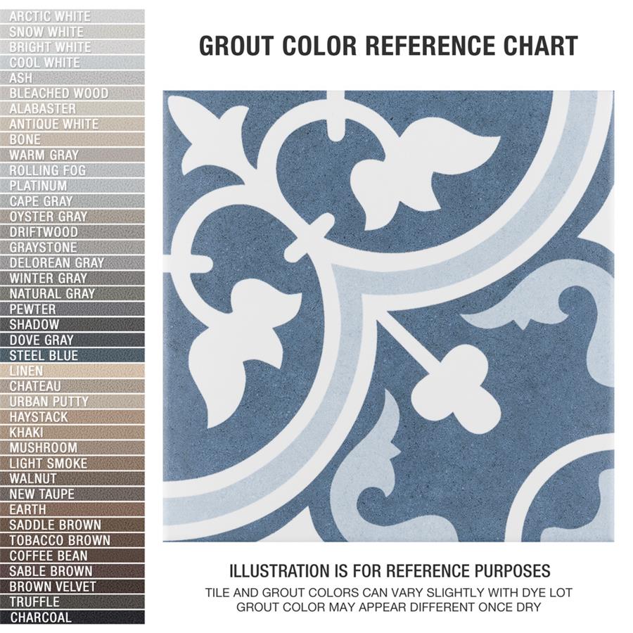 As the original encaustic-look porcelain tile that started the patterned tile trend, our Arte Artic 9-3/4 in. x 9-3/4 in. Porcelain Floor and Wall Tile draws inspiration from artisan cement tiles. Crafted in Spain, this porcelain tile features a large floral old-world pattern in snow white and light blue that frames dueling arcs in the center, offering subtle contrast and dimension to the decoration. Set on the highest-quality denim blue base glaze, the contrasting design features a weathered, speckled look, replicating the beauty of its cement muse. The floral, geometric pattern blends into virtually any design theme, making this an exceptional product for modern installations and historic renovations. Its impervious, frost resistant, and durable features make it an ideal choice for both commercial and residential indoor and outdoor installations including, kitchens, bathrooms, backsplashes, showers, hallways, entryways, patios, and fireplace facades. This tile is a perfect choice on its own or coordinated with other products in the Arte series. Tile is the better choice for your space. This tile is made from natural ingredients, making it a healthy choice as it is free from allergens, VOCs, formaldehyde, and PVC.Try out our grout test below to determine which grout color suits your design preferences.