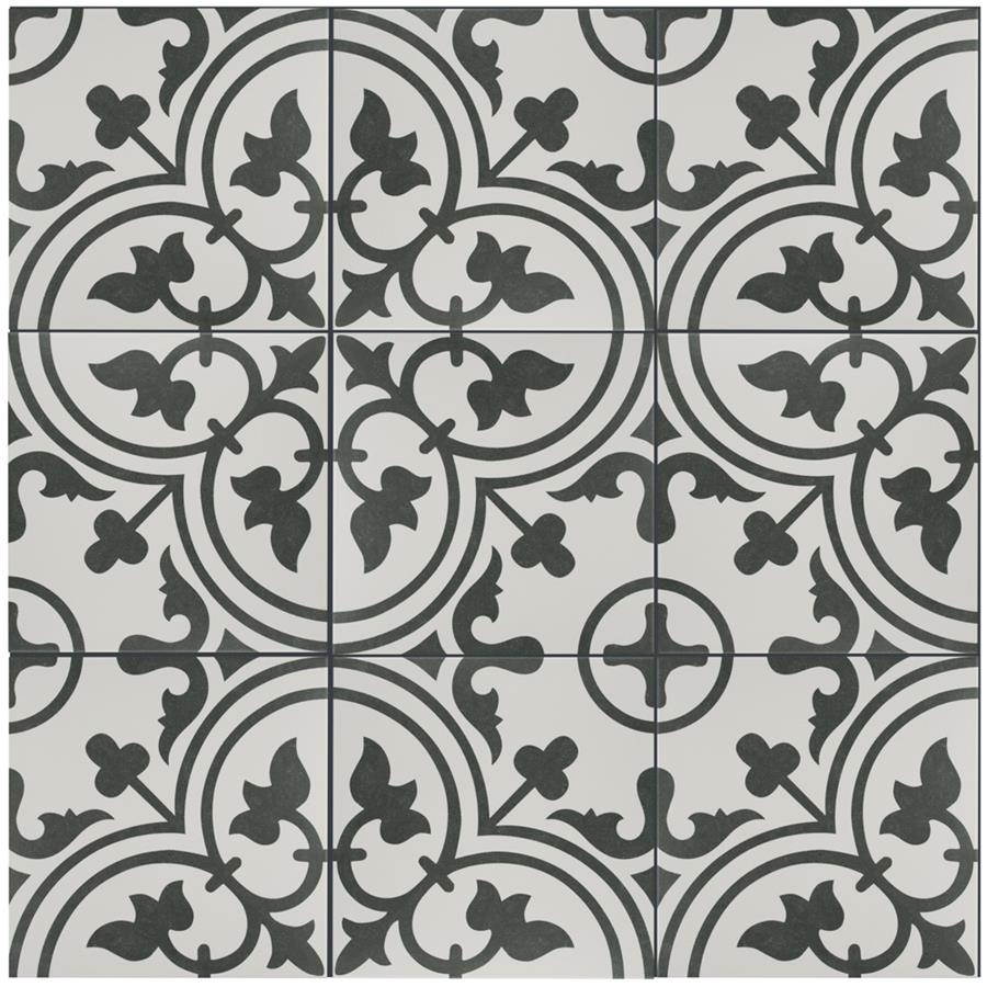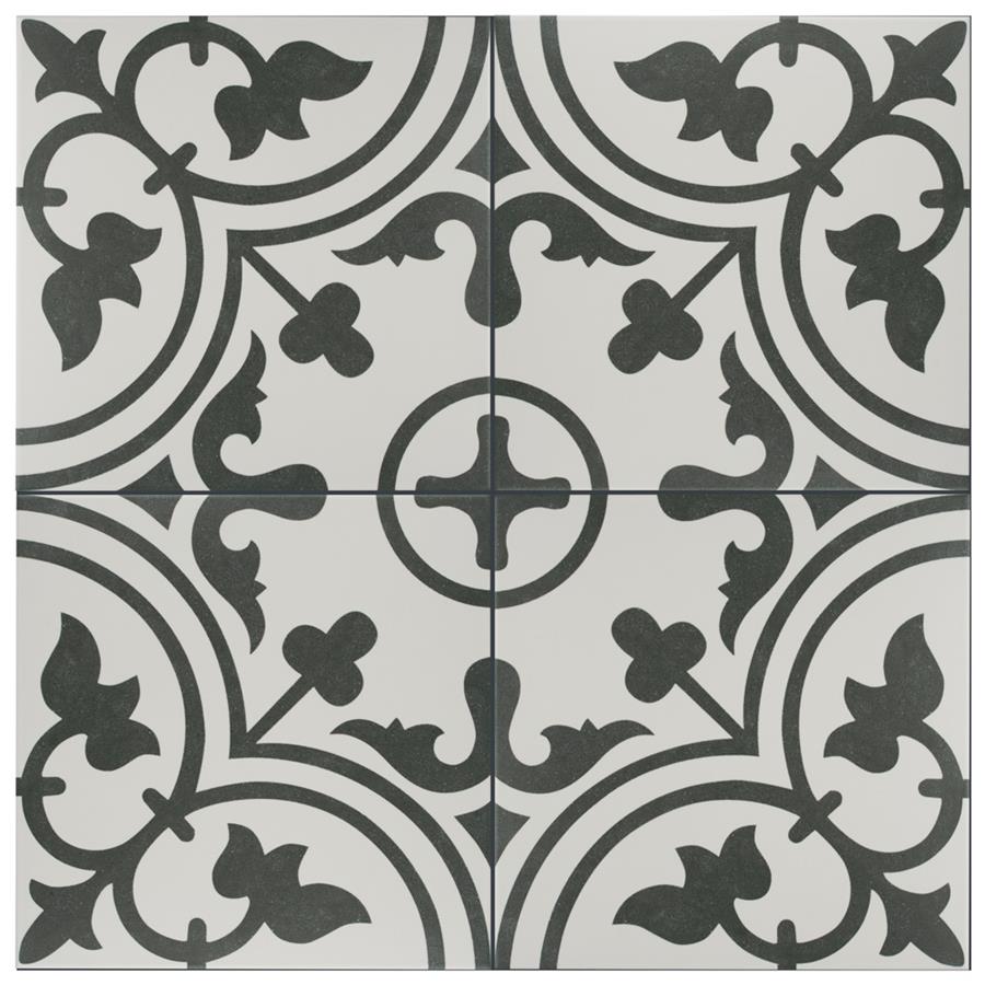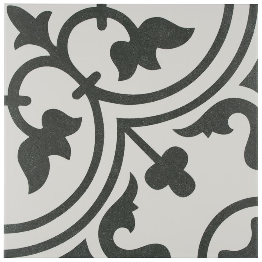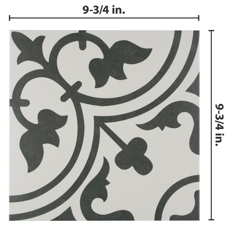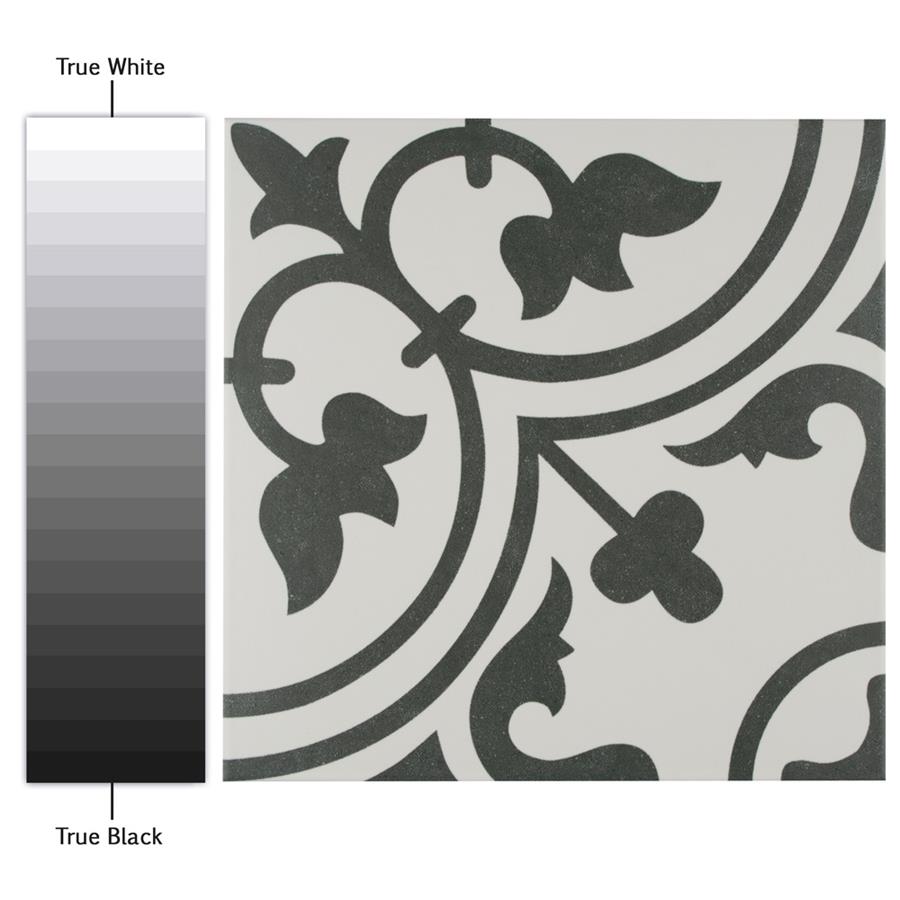 As the original encaustic-look porcelain tile that started the patterned tile trend, our Arte White 9-3/4 in. x 9-3/4 in. Porcelain Floor and Wall Tile draws inspiration from artisan cement tiles. Crafted in Spain, this porcelain tile features a large floral old-world pattern in rich charcoal black that frames dueling arcs in the center, offering subtle contrast and dimension to the decoration. Set on the highest-quality solid snow white base glaze, the contrasting design features a weathered, speckled look, replicating the beauty of its cement muse. The floral, geometric pattern blends into virtually any design theme, making this an exceptional product for modern installations and historic renovations. Its impervious and frost-resistant features make it an ideal choice for both indoor and outdoor residential installations including kitchens, bathrooms, showers, entryways and patios.Tile is the better choice for your space. This tile is made from natural ingredients, making it a healthy choice as it is free from allergens, VOCs, formaldehyde and PVC.Try out our grout test below to determine which grout color suits your design preferences.
