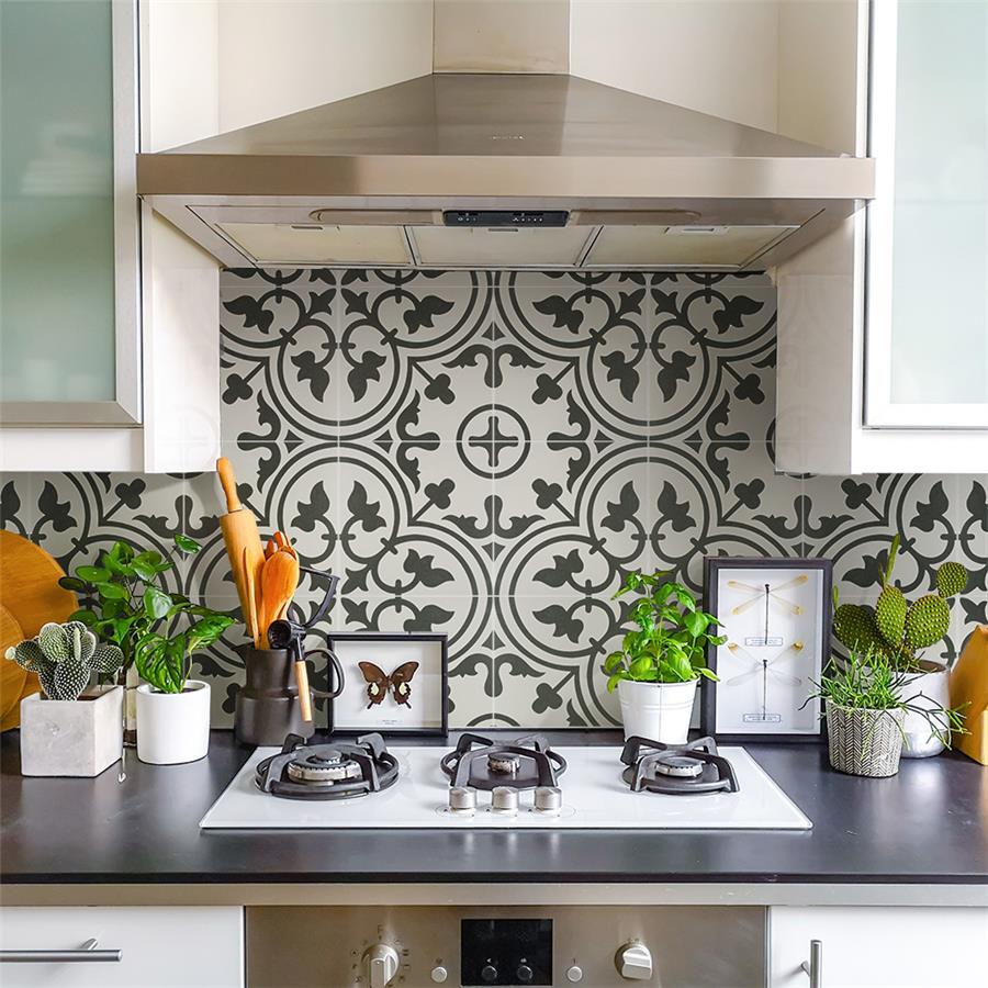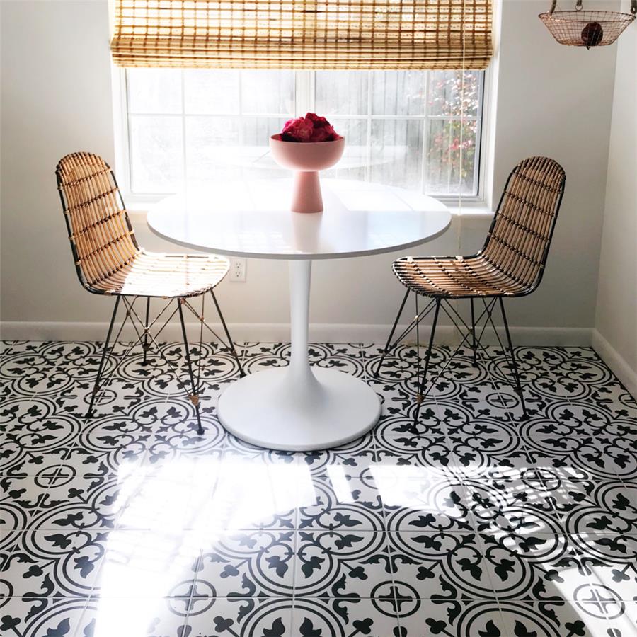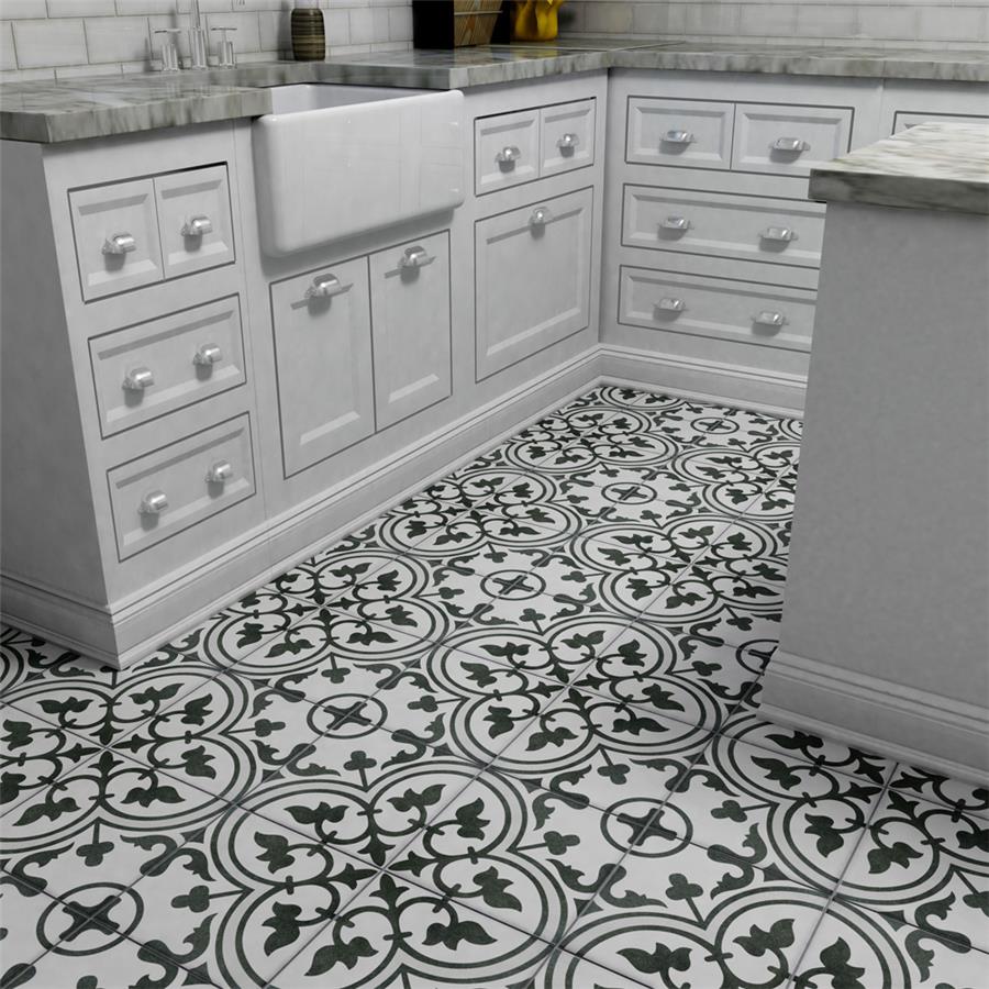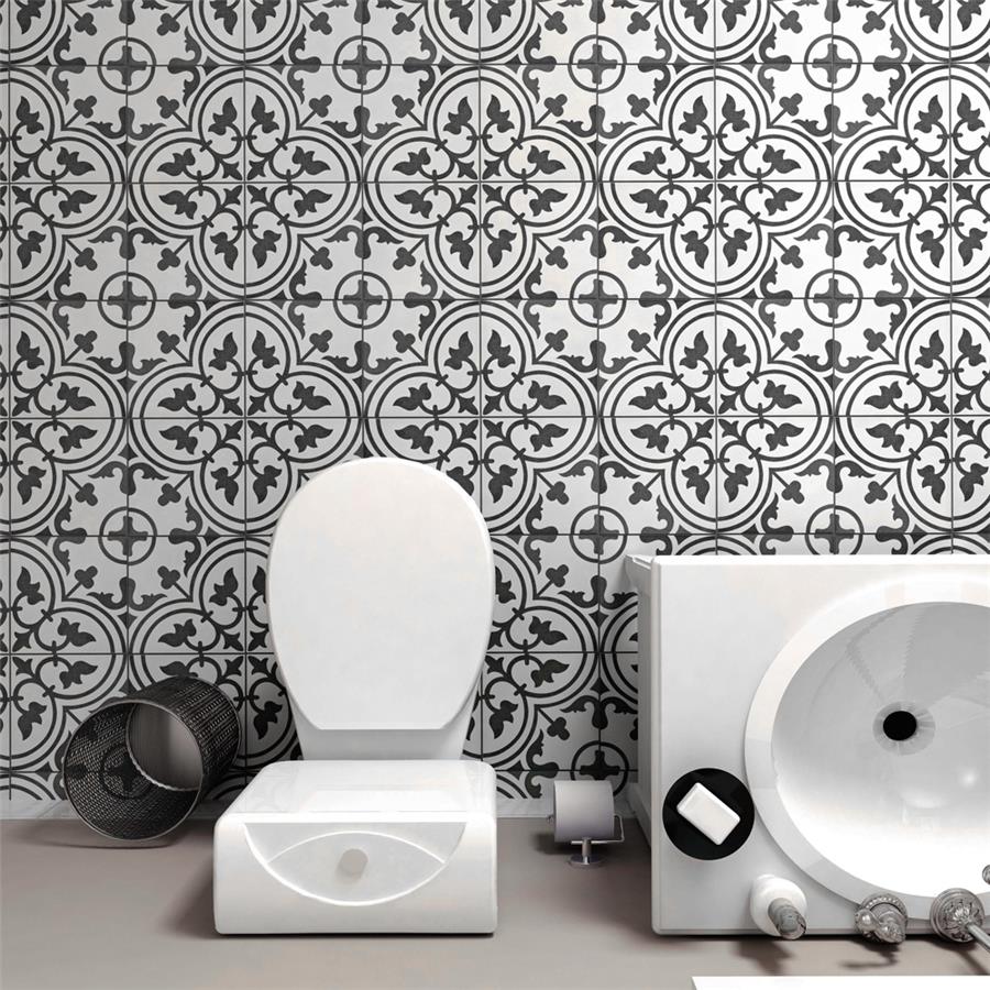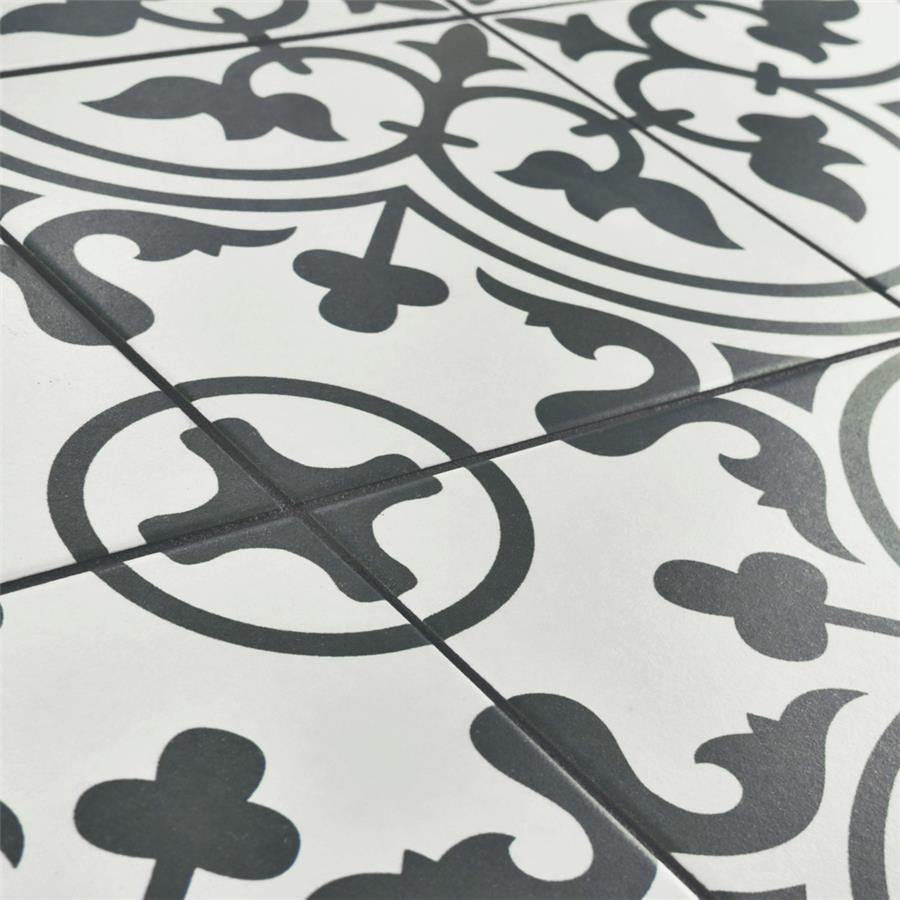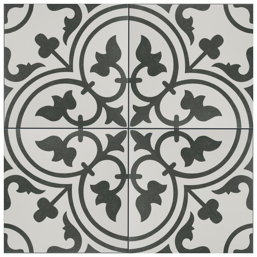 As the original encaustic-look porcelain tile that started the patterned tile trend, our Arte White 9-3/4 in. x 9-3/4 in. Porcelain Floor and Wall Tile draws inspiration from artisan cement tiles. Crafted in Spain, this porcelain tile features a large floral old-world pattern in rich charcoal black that frames dueling arcs in the center, offering subtle contrast and dimension to the decoration. Set on the highest-quality solid snow white base glaze, the contrasting design features a weathered, speckled look, replicating the beauty of its cement muse. The floral, geometric pattern blends into virtually any design theme, making this an exceptional product for modern installations and historic renovations. Its impervious and frost-resistant features make it an ideal choice for both indoor and outdoor residential installations including kitchens, bathrooms, showers, entryways and patios.Tile is the better choice for your space. This tile is made from natural ingredients, making it a healthy choice as it is free from allergens, VOCs, formaldehyde and PVC.Try out our grout test below to determine which grout color suits your design preferences.