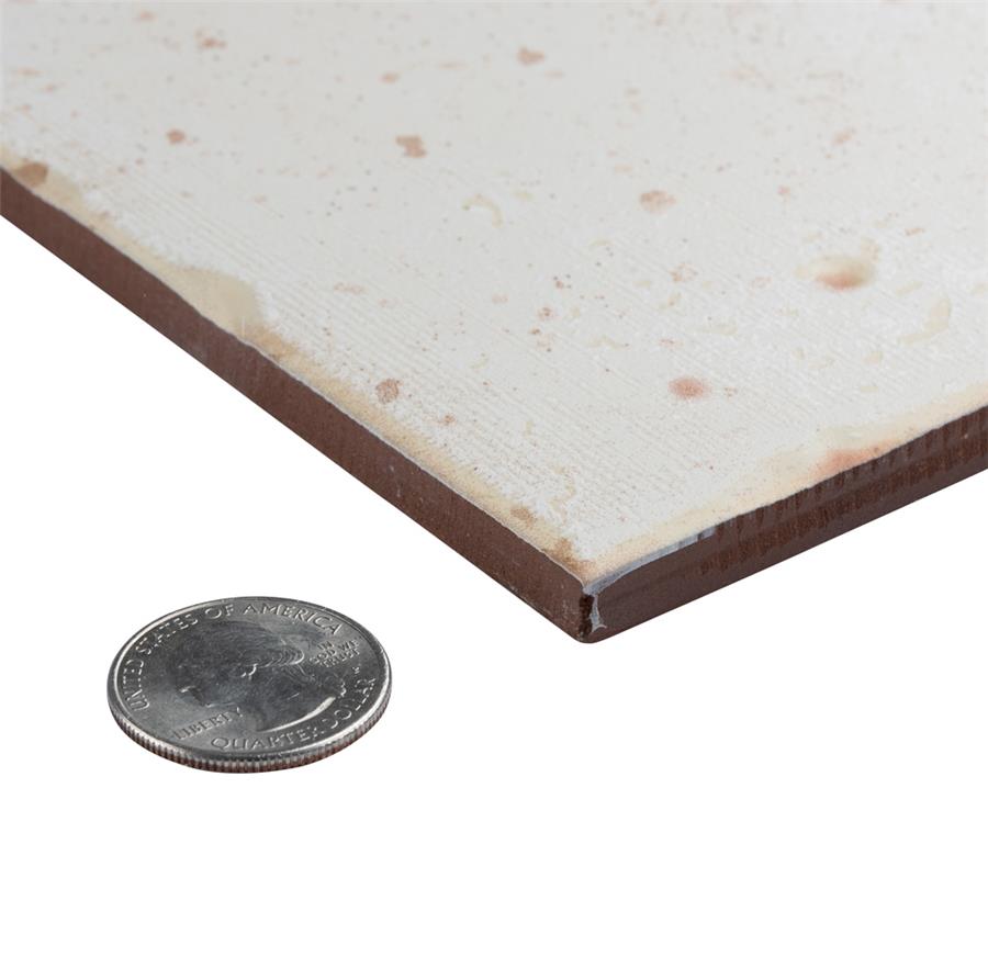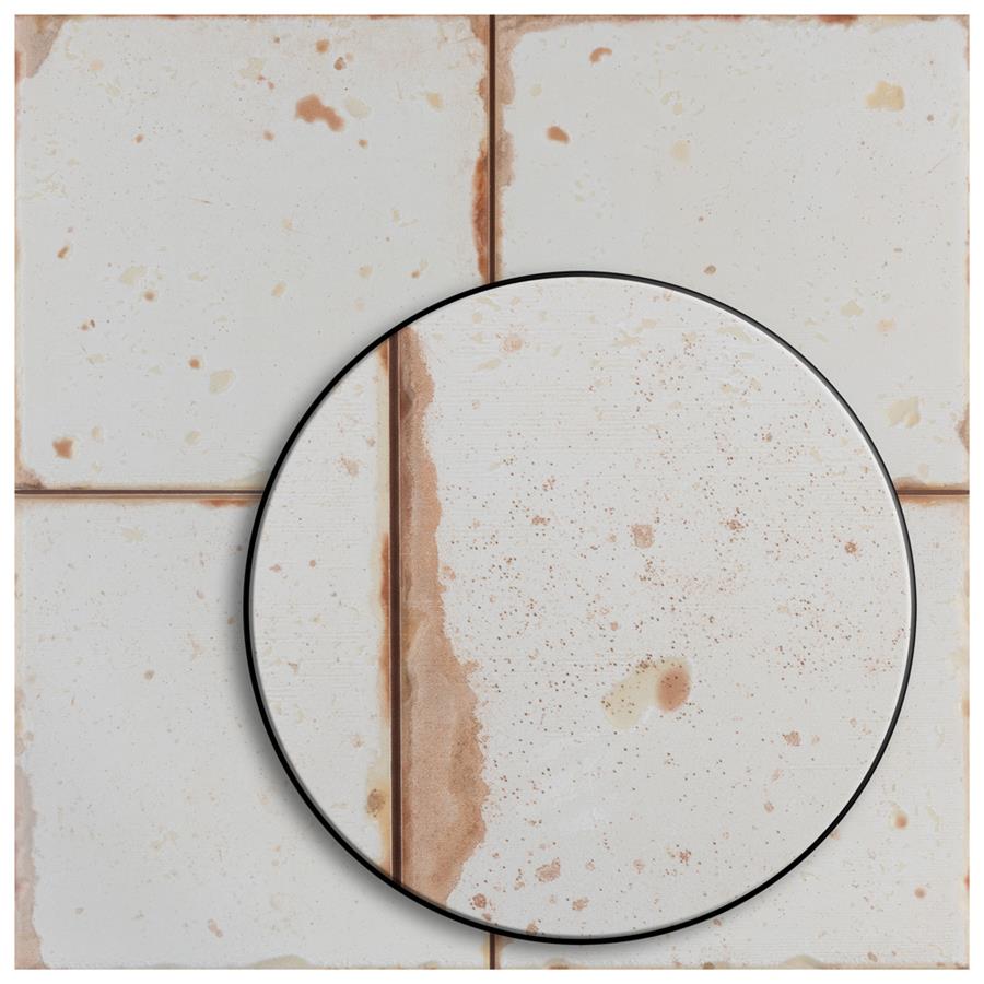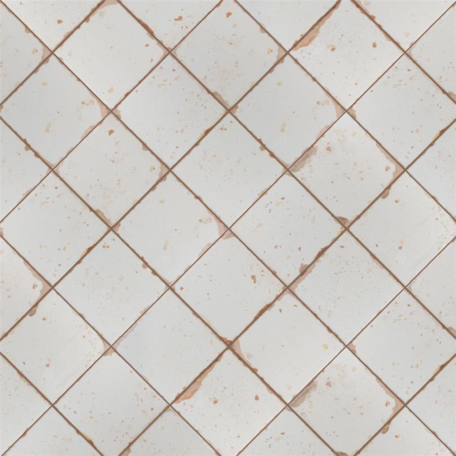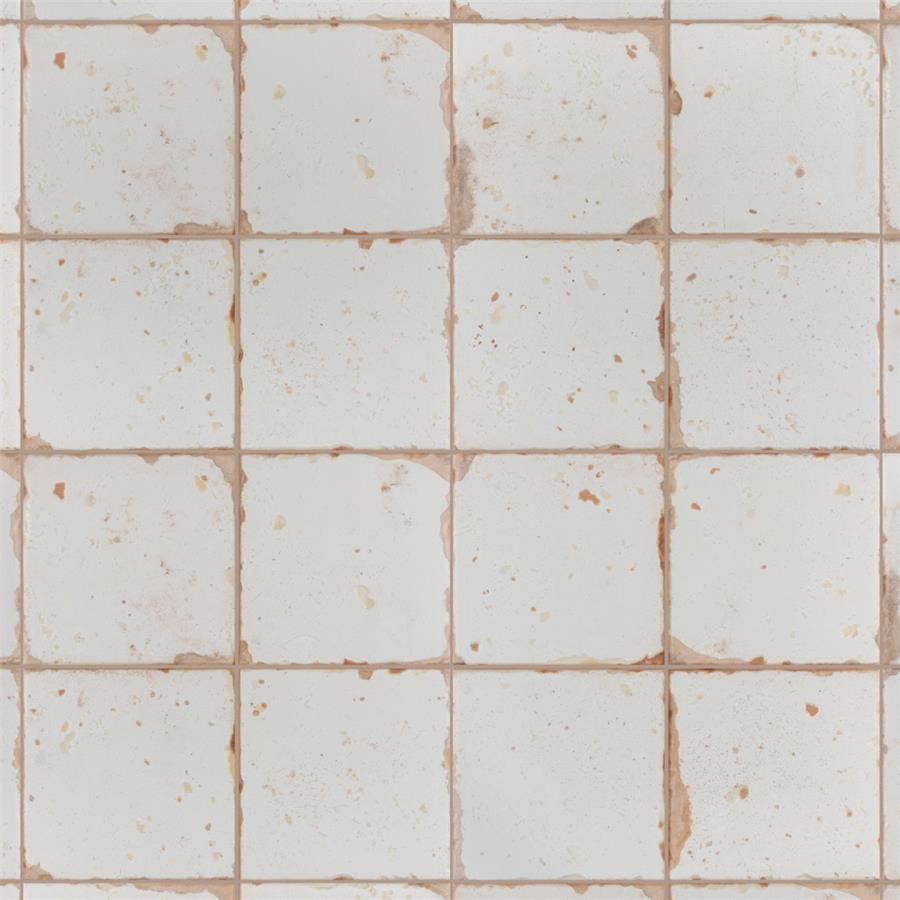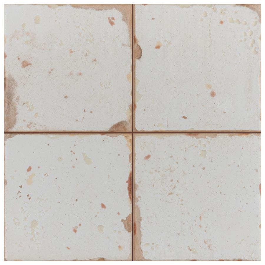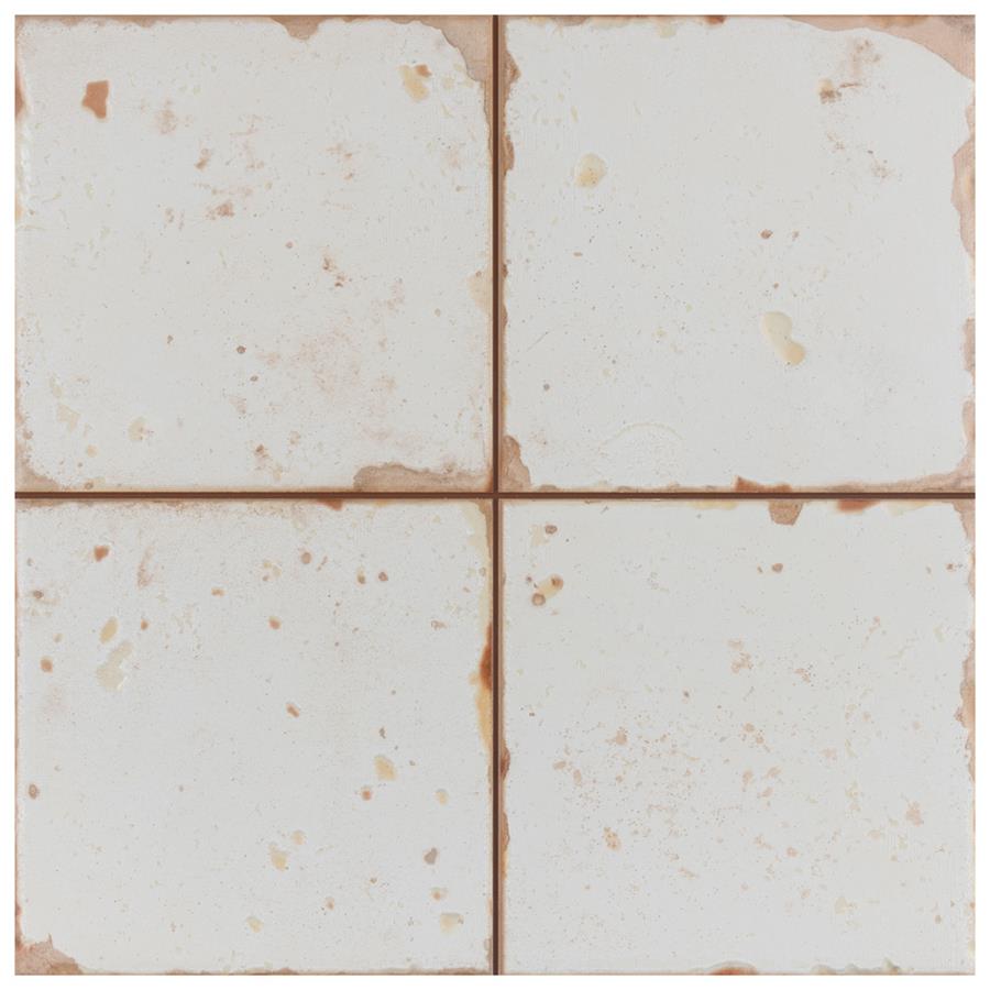 Inspired by the sun-drenched streets of Spain, our Artisan Blanco 13 in. x 13 in. Ceramic Floor and Wall Tile brings vintage charm to your interior. The low-sheen white glaze is offset by imitations of scuffs and spots that mark well-loved, century-old tiles. Rich red tones from the ceramic underneath peek through, adding a worn finishing touch on this uniquely aged piece. There are 8 different variations of this pattern randomly spread throughout each case, it is easy to capture the authentic appearance of a matured installation. Save time and labor spent arranging smaller square tiles and instead install these durable ceramic slabs, which have four squares with realistic lines in between to mimic grout. The scored grout lines can be grouted with the color of your choice to further customize your installation.Tile is the better choice for your space. This tile is made from natural ingredients, making it a healthy choice as it is free from allergens, VOCs, formaldehyde and PVC.