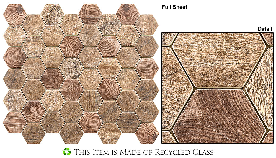 Tile size: 2” Hexagon Sheet size: 12 7/8” x 11 1/8” Sheet coverage: 1 SF Rows per sheet: 8Tiles per sheet: 48 Tile thickness: 1/4″ (6mm) Grout joints: 1/16″ (2mm)This product is mesh mountedThis Item is Made of Recycled GlassDue to the variance in installation methods, grout colors, lighting, image variances and computer monitor settings; the images above may not accurately represent the true color of the products after installation.Therefore Glazzio Tiles always recommends that tiles not be purchased from an image of any kind.