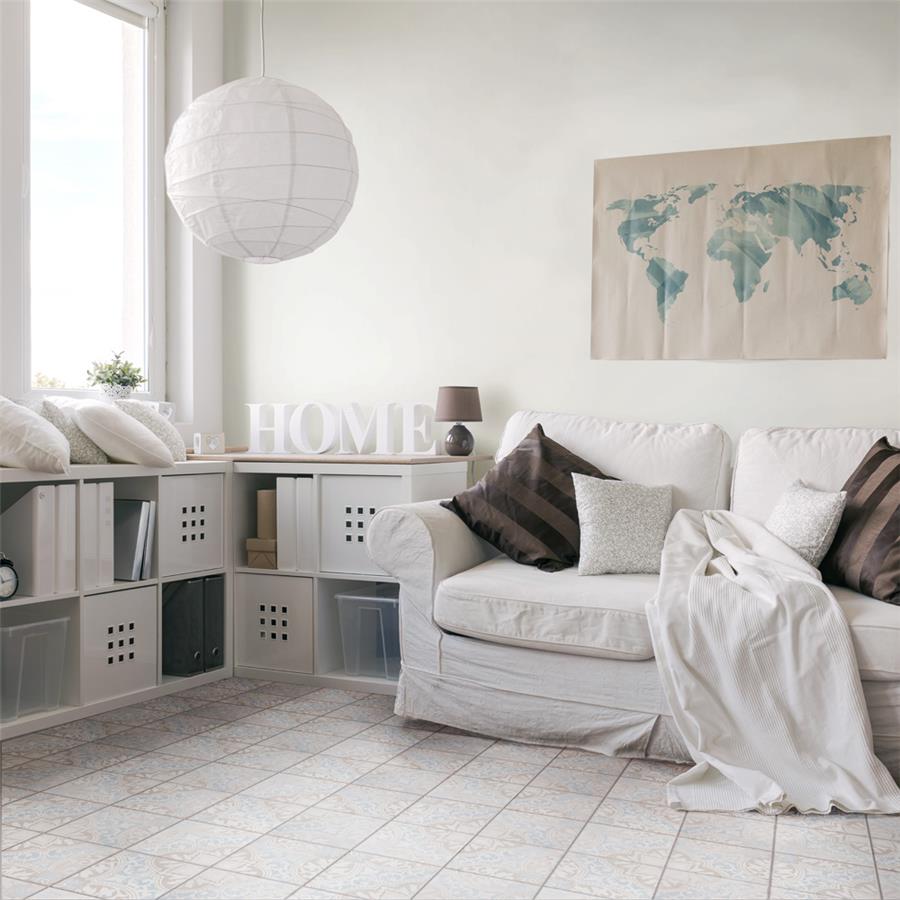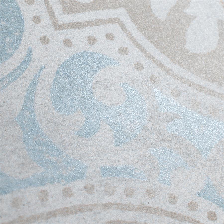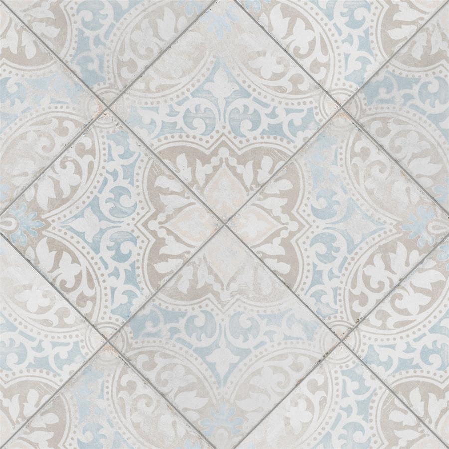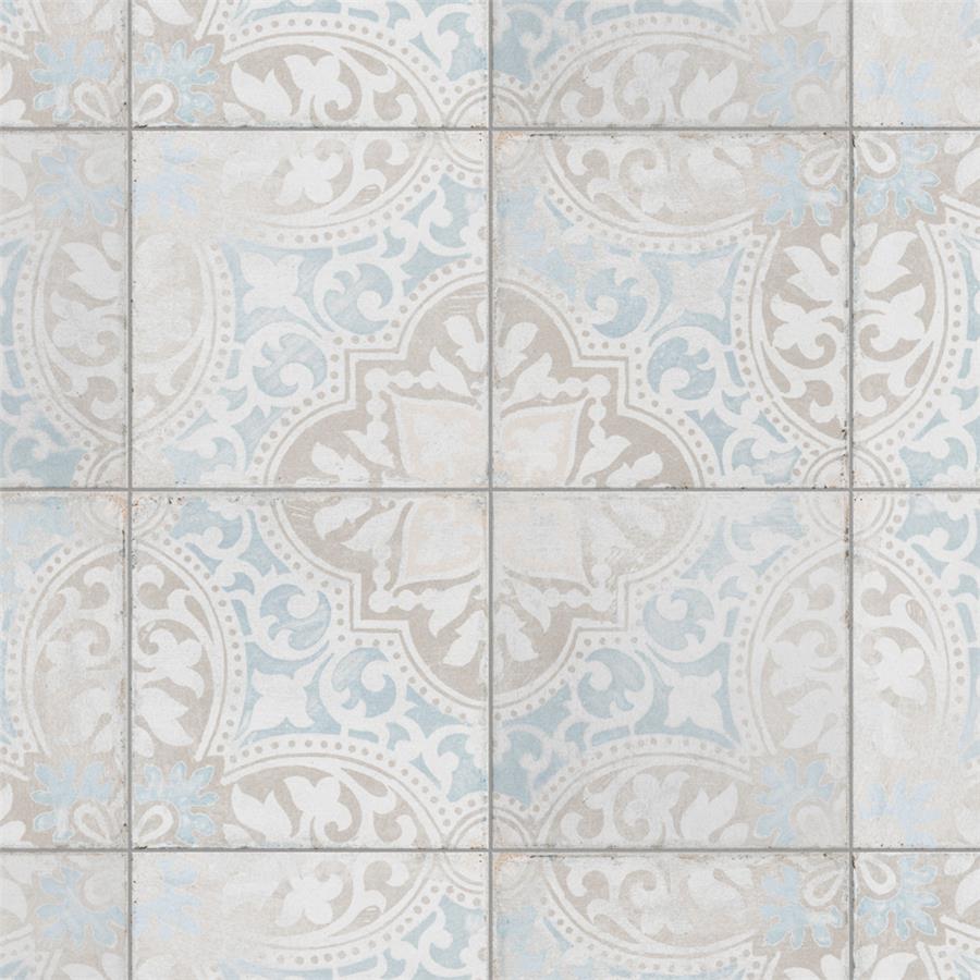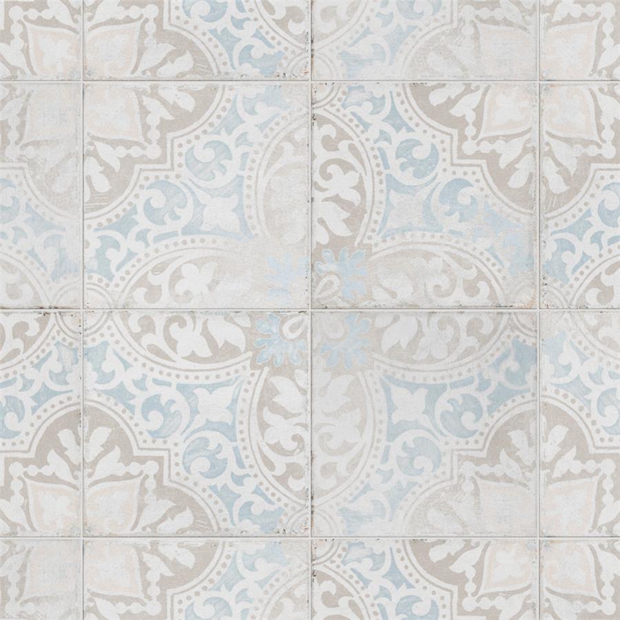 Modern and vintage design elements blend together to create our Barcelona Decor Montjuic 5-3/4 in. x 5-3/4 in. Porcelain Floor and Wall Tile. Featuring a worn cement appearance, this tile is a subtle statement piece created by floral motifs in faded pastel shades of light blue, beige and brown set on a textured antique white base glaze. With a delicate color palette and realistic imitations of scuffs and spots, this encaustic inspired tile evokes a loved, worn and century-old appearance with a chic modern edge. Available in six print variations that are randomly scattered throughout each case, the variation throughout each tile mimics an authentic aged appearance. Its impervious, frost-resistant and durable features make this tile and ideal choice for both indoor and outdoor commercial and residential installations including, backsplashes, kitchens, bathrooms, showers, entryways and patios. This tile is a perfect choice on its own or paired with other products in the Barcelona Collection.Tile is the better choice for your space. This tile is made from natural ingredients, making it a healthy choice as it is free from allergens, VOCs, formaldehyde and PVC.