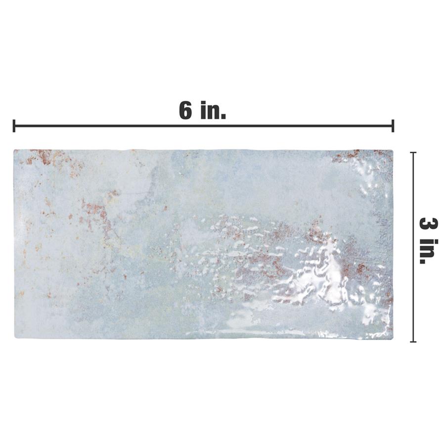 Blending modern and vintage design elements, our Biarritz Blue 3 in. x 6 in. Ceramic Subway Wall Tile offers a casual urban appeal. Featuring a worn appearance, this tile is a subtle statement piece created by distressed patterns in a light blue color tone. With slight undulation and a mixed finish, this subway tile offers a handmade appearance through subtle imperfections that make it look like each tile was handcrafted. Available in eighteen print variations that are randomly scattered throughout each case, the variation throughout each tile mimics an authentic aged appearance. Its glazed feature makes this tile an ideal choice for indoor wall installations including, kitchen backsplashes bathroom showers, and fireplace facades. This tile is a perfect choice on its own or paired with other products in the Biarritz Collection.Tile is the better choice for your space. This tile is made from natural ingredients, making it a healthy choice as it is free from allergens, VOCs, formaldehyde and PVC.