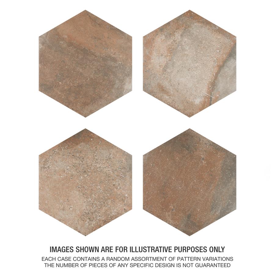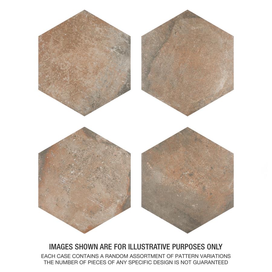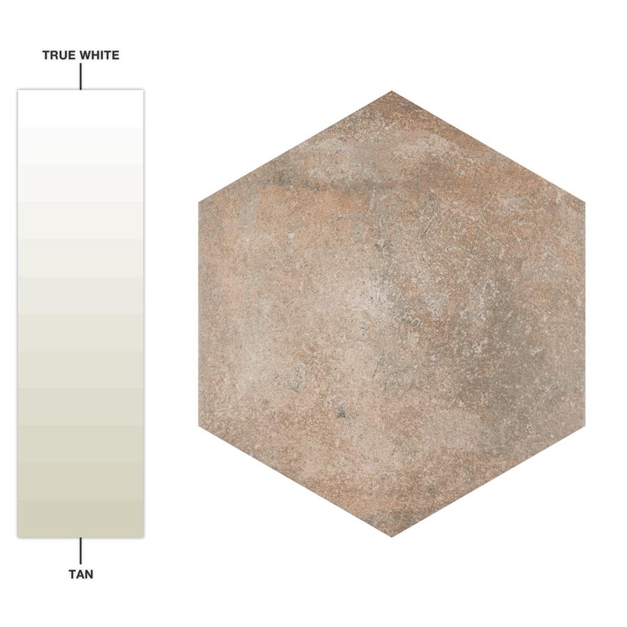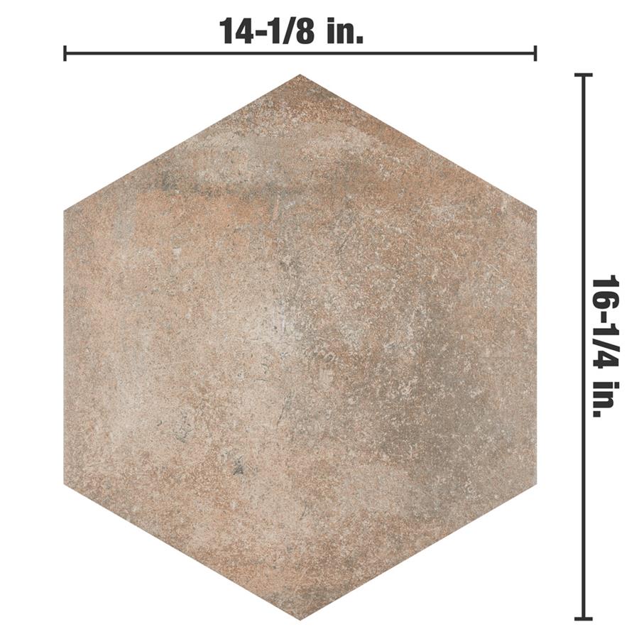 Bring a rustic feel to any space with the SomerTile Boston Ferro Hex Crema 14-1/8 in. x 16-1/4 in. Porcelain Floor and Wall Tile. This impervious tile has substantial variation between each case, which offers a one-of-a-kind look. With tones of beige, auburn and ash grey that vary throughout every piece, no two looks will ever be the same. This tile offers endless design possibilities when paired with other products in the Boston Ferro series. Use this slightly textured tile in all indoor and outdoor locations, including walls, floors and patios.Tile is the better choice for your space. This tile is made from natural ingredients, making it a healthy choice as it is free from allergens, VOCs, formaldehyde and PVC.
