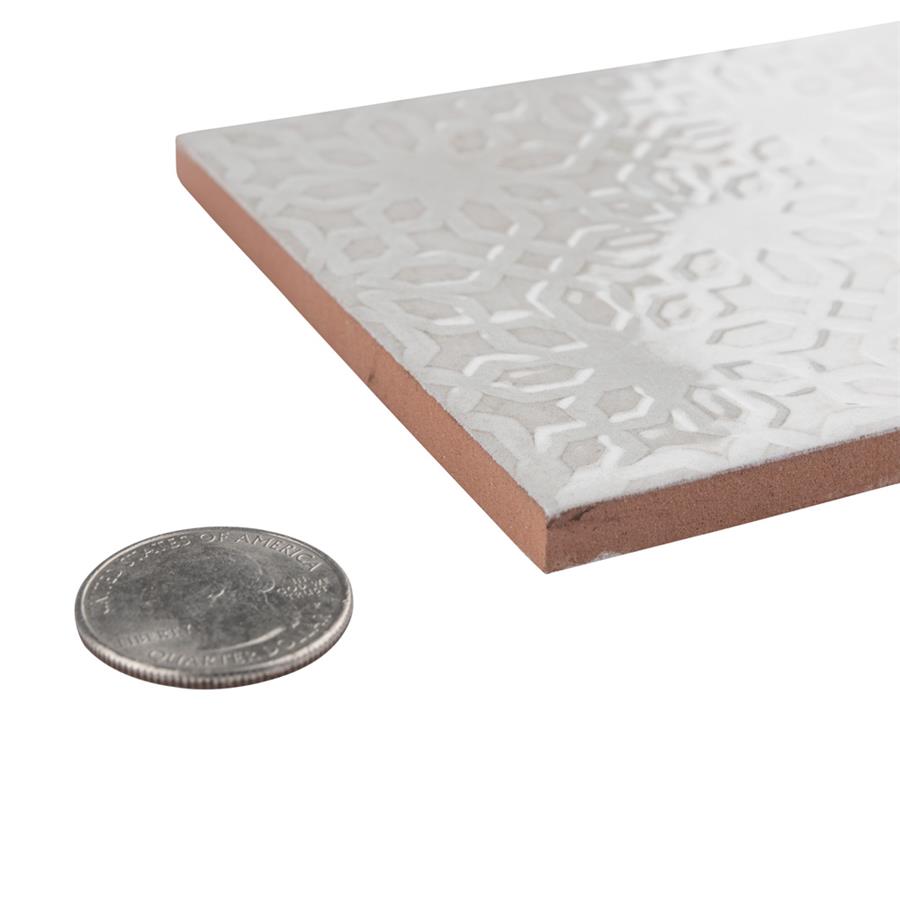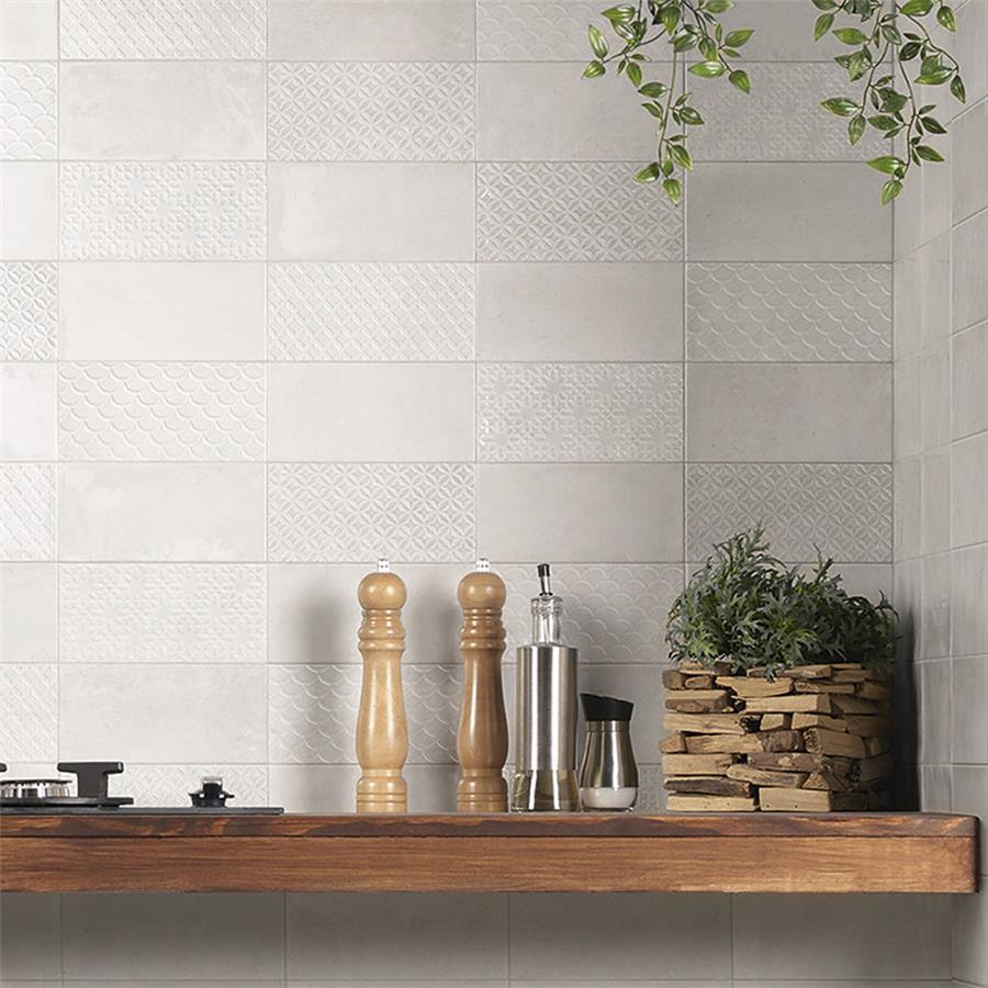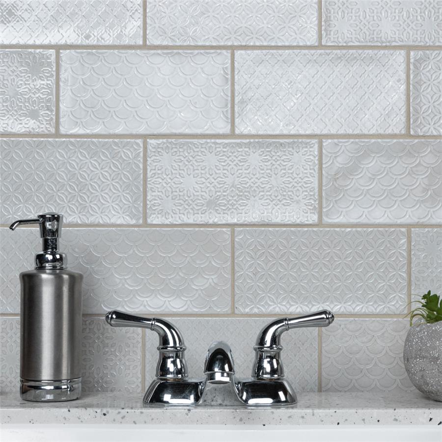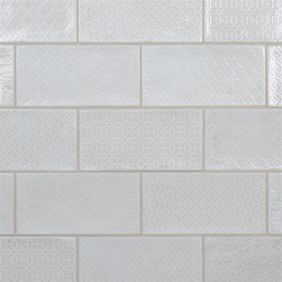 Inspired by the colors and patterns of the historical London district, our Camden Decor Antique Bianco 4 in. x 8 in. Ceramic Subway Wall Tile radiates simplistic English elegance. This enlarged subway tile features four varying old-world designs in antique white tones with a smooth surface. With a glossy undulated surface, this geometric patterned tile adds timeless appeal and sophisticated depth to any spaceIts glazed feature makes this tile an ideal choice for indoor wall installations including, kitchen backsplashes bathroom showers, and fireplace facades. This tile is a perfect choice on its own or paired with other products in the Camden Decor Collection. Tile is the better choice for your space. This tile is made from natural ingredients, making it a healthy choice as it is free from allergens, VOCs, formaldehyde and PVC.