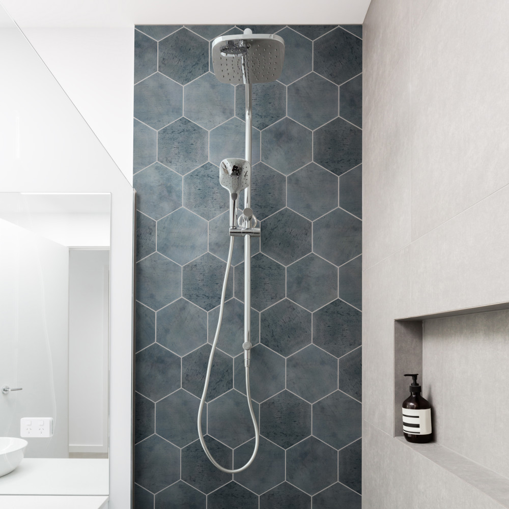 Modeling a stone look, our Capri Hex Indigo Porcelain Floor and Wall Tile features a smooth, glossy finish, making it a great choice for your space. With its impervious, frost-resistant features, this blue hexagon tile is an ideal selection for both indoor and outdoor residential installations, including bathrooms, backsplashes, showers, hallways and fireplace facades. This tile is a perfect choice on its own or paired with other products in the Capri Hex Collection. Tile is the better choice for your space!