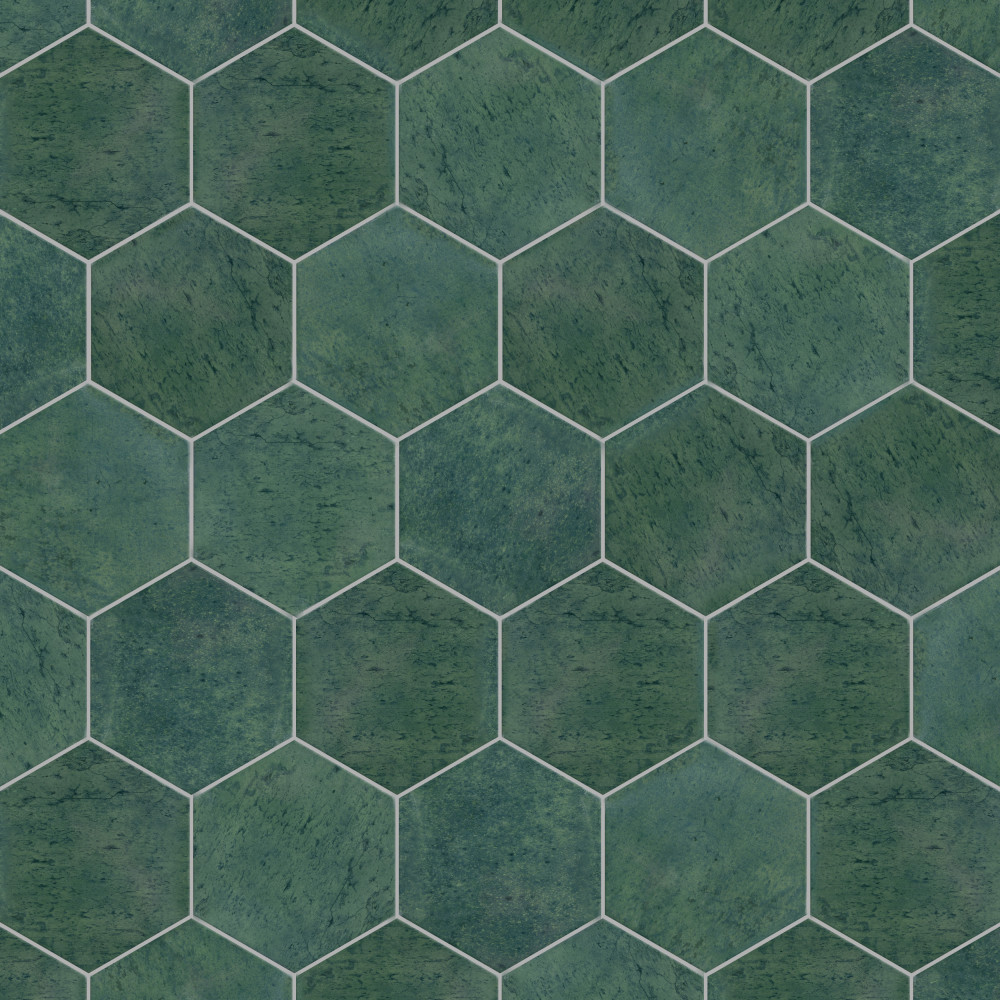 Modeling a stone look, our Capri Hex Oliva Porcelain Floor and Wall Tile features a smooth, glossy finish, making it a great choice for your space. With its impervious, frost-resistant features, this green hexagon tile is an ideal selection for both indoor and outdoor residential installations, including bathrooms, backsplashes, showers, hallways and fireplace facades. This tile is a perfect choice on its own or paired with other products in the Capri Hex Collection. Tile is the better choice for your space!