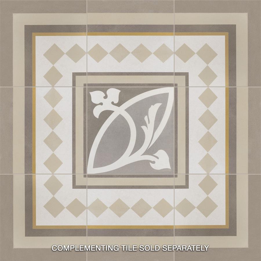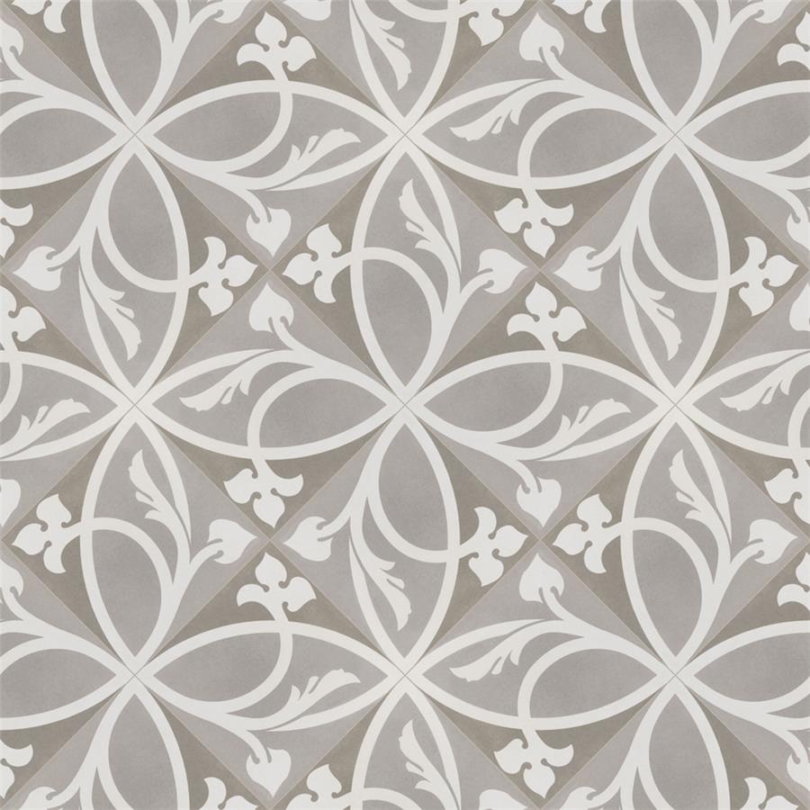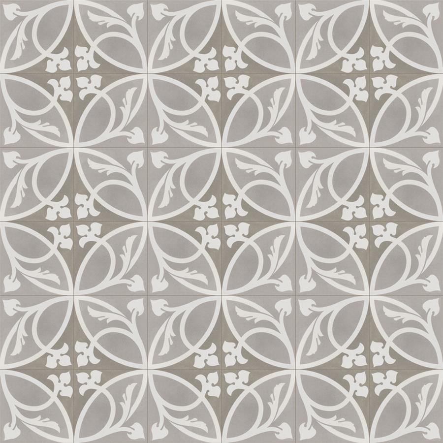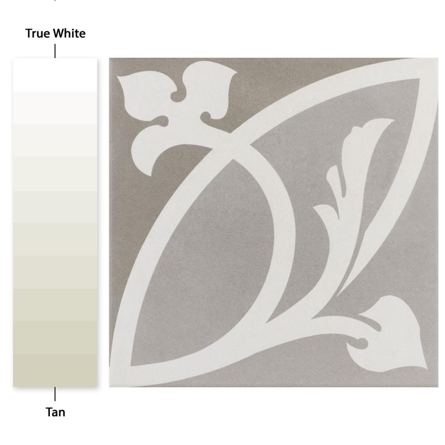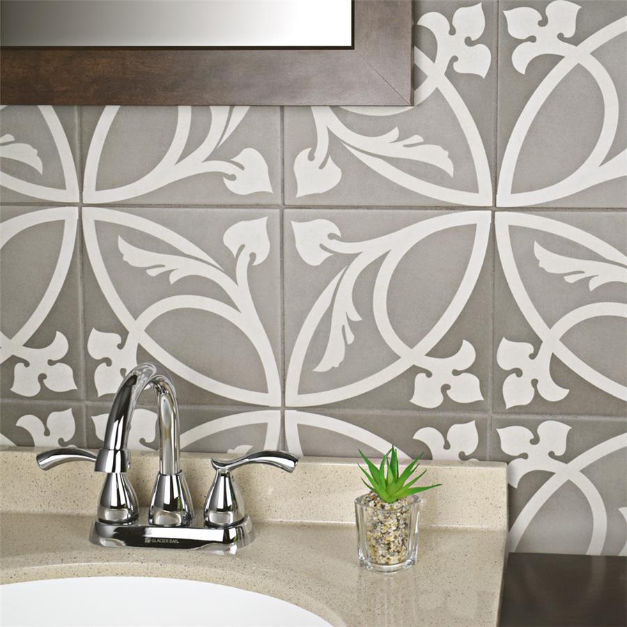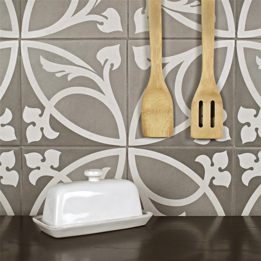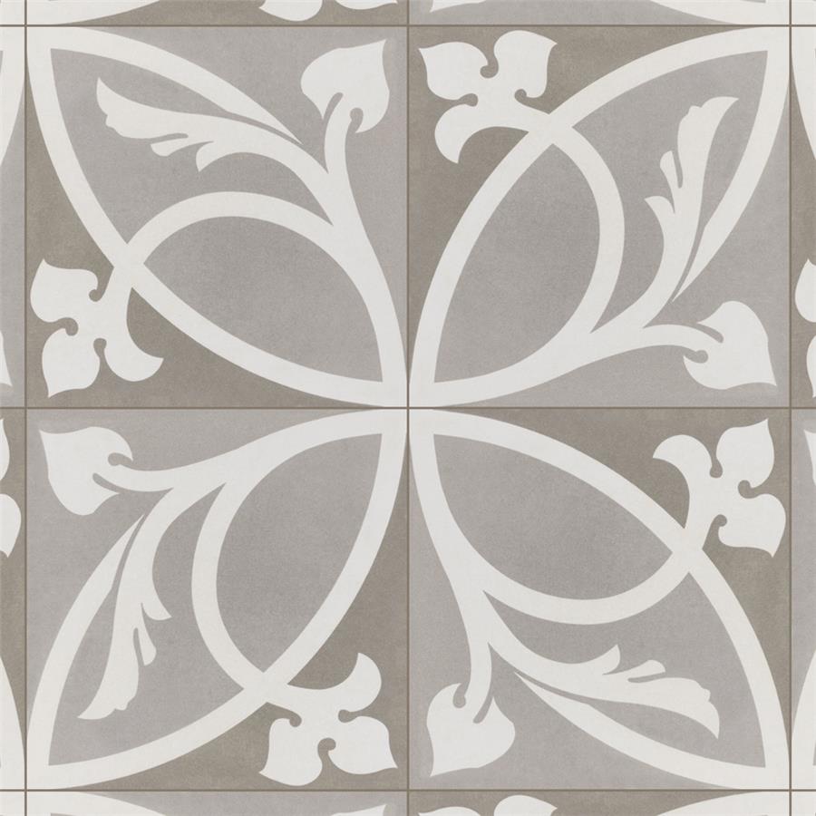 Achieve patterned elegance with the SomerTile Caprice Liberty Taupe 7-7/8 in. x 7-7/8 in. Porcelain Floor and Wall Tile. This tile features subtle hues of light and dark taupe with a light beige ivy-inspired design. When you place these tiles together properly, they create dual-toned rings that evoke an elegant design. Great for bringing an encaustic look to the home, this slightly textured tile has a matte glazed finish. Durable and frost resistant, this tile is great for any residential location, including entryways, kitchens, showers and patios. It also has a slip-resistant surface, making it safe for wet locations.