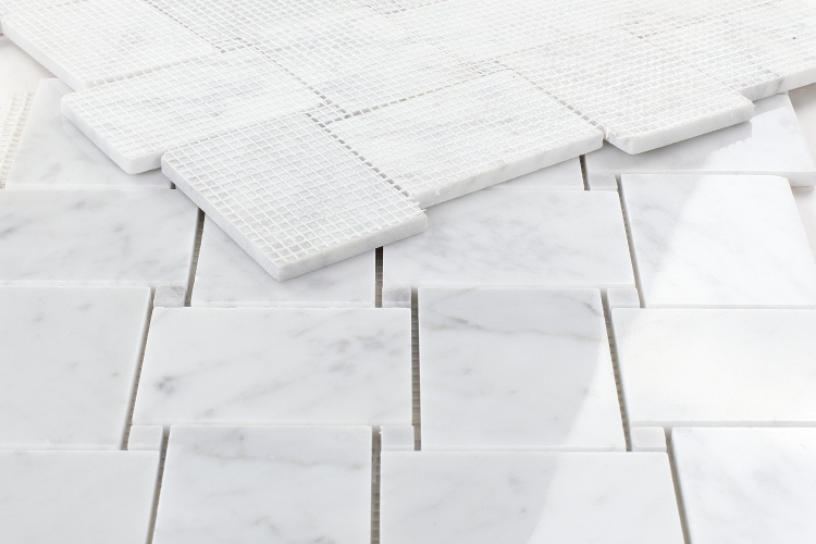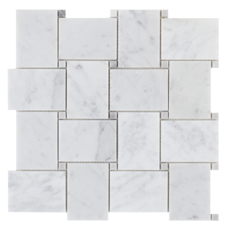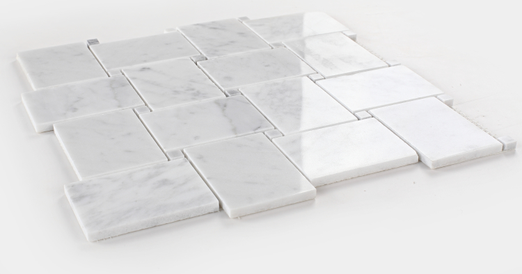 Product Sold By The SheetCarrara Bianco House – Carrara White Marble in Pinwheel Pattern with Calacatta Grey Dots. The chip size is 2 3/8″ X3 3/8″ (Previous name Calacatta Bianco House) This Mosaic comes in a Polished finish.Suggested Grout Color: Bostik Trucolor White H152WARNING: This product can expose you to chemicals including crystalline silica (airborne particles of respirable size) in dust created during fabrication/installation if the product is dry cut/ground or pulverized, which are known to the State of California to cause cancer. For more information, go to https://www.p65warnings.ca.gov/.
