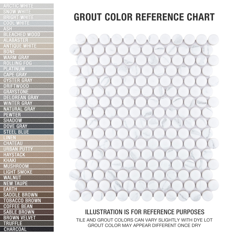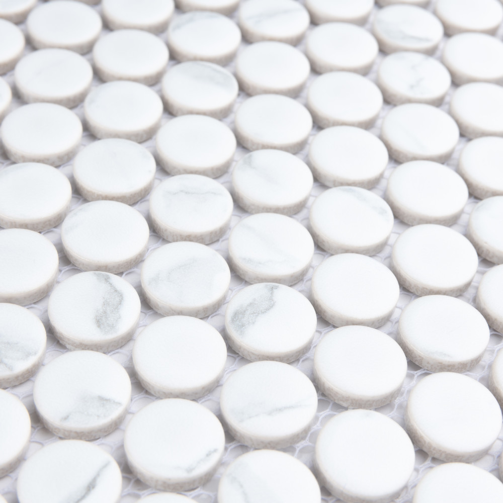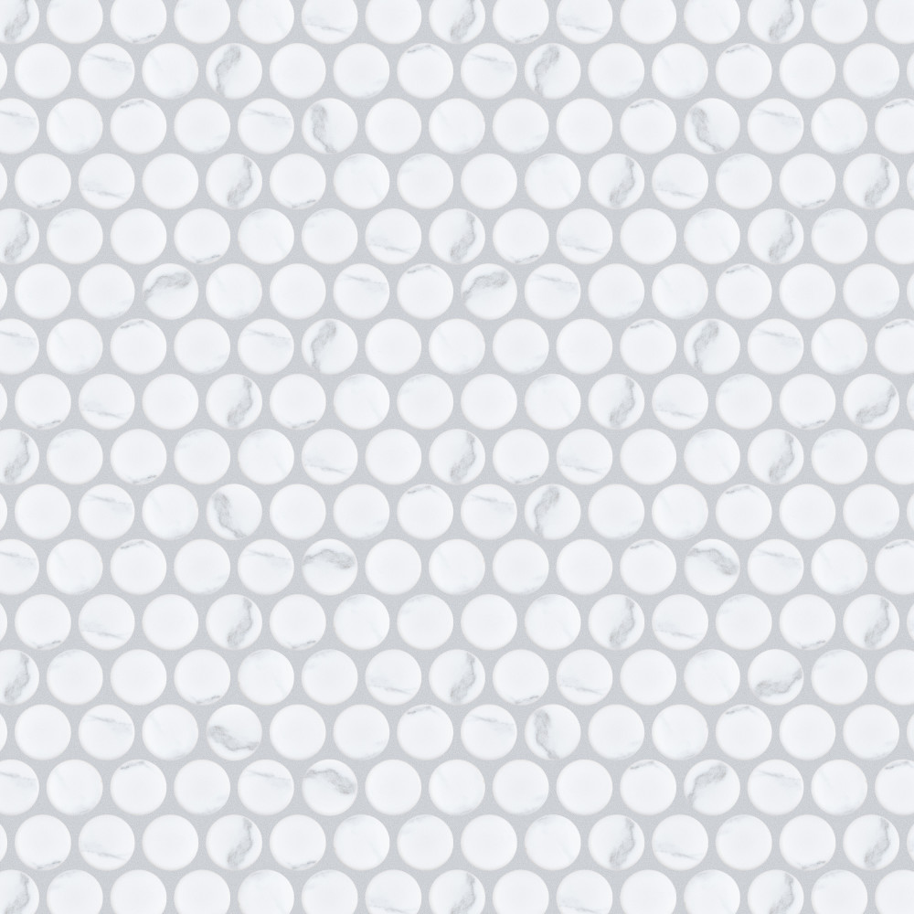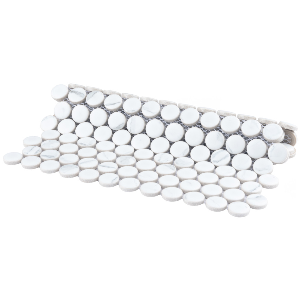 Capturing the appearance of a marble look, our Carrione Penny Matte Carrara Porcelain Floor and Wall Tile features a smooth, matte finish, making it a great choice for your space. With its impervious, frost-resistant features, this white round mosaic is an ideal selection for both indoor and outdoor residential installations, including bathrooms, backsplashes, showers, hallways and fireplace facades. This tile is a perfect choice on its own or paired with other products in the Carrione Penny Collection. Tile is the better choice for your space!