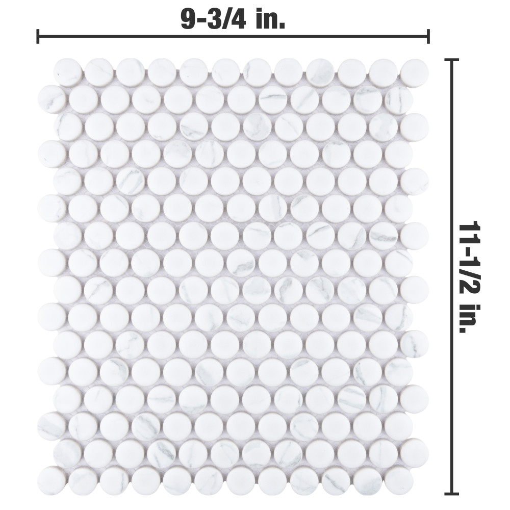 Carrione Penny Matte Carrara 9-3/4 in. x 11-1/2 in. Porcelain Mosaic Tile