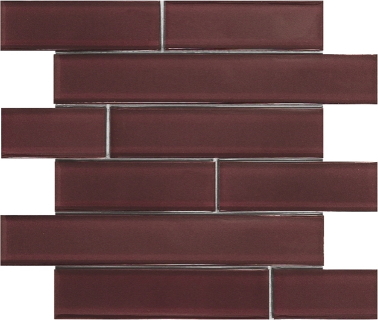 Polished purple glass in subway layout -chip sizes are 2×12, 2×8, 2×6, 2×4