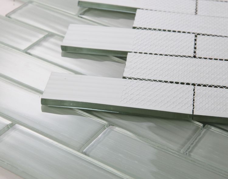 Casale Series: Casale Silver Grey 11.75×11.75 – Textured Silver Grey Glass in subway layout.