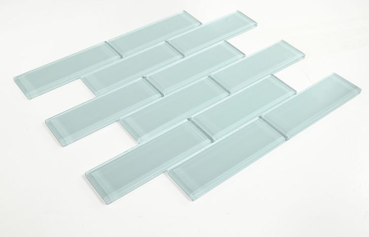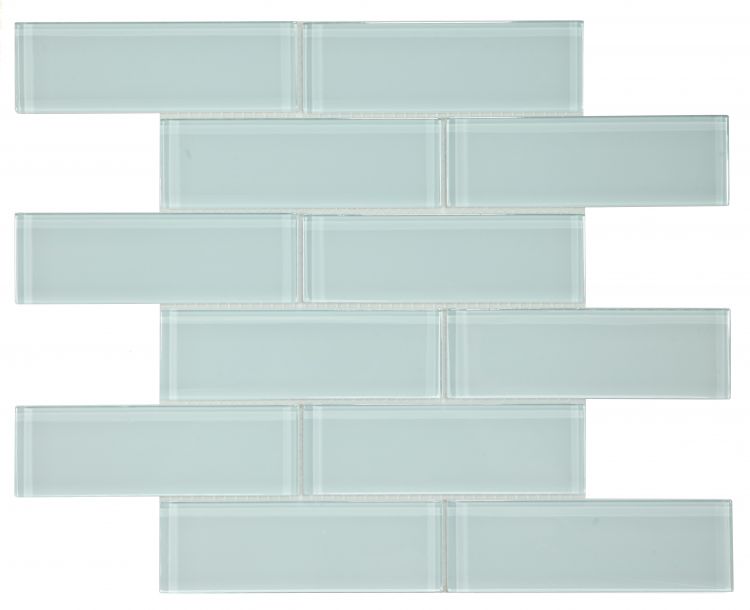 Casale Series: Casale Turquoise 11.75 x 11.75 – Soft polished turquoise colored glass in subway layout.