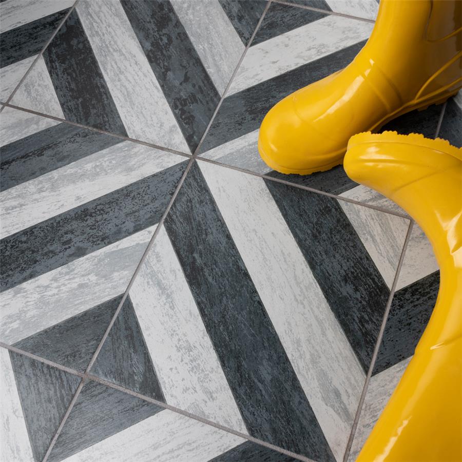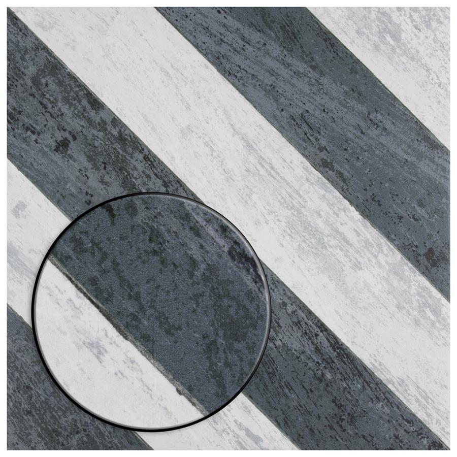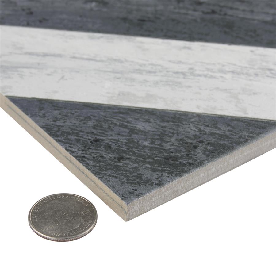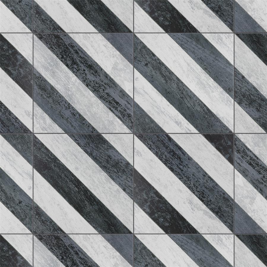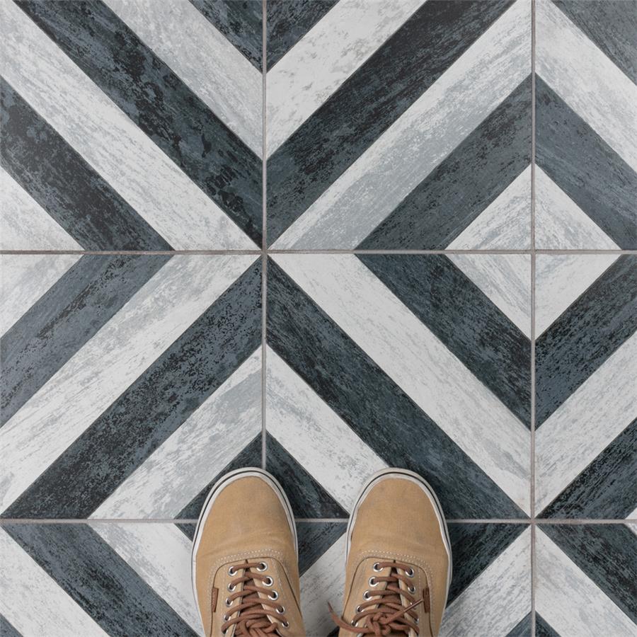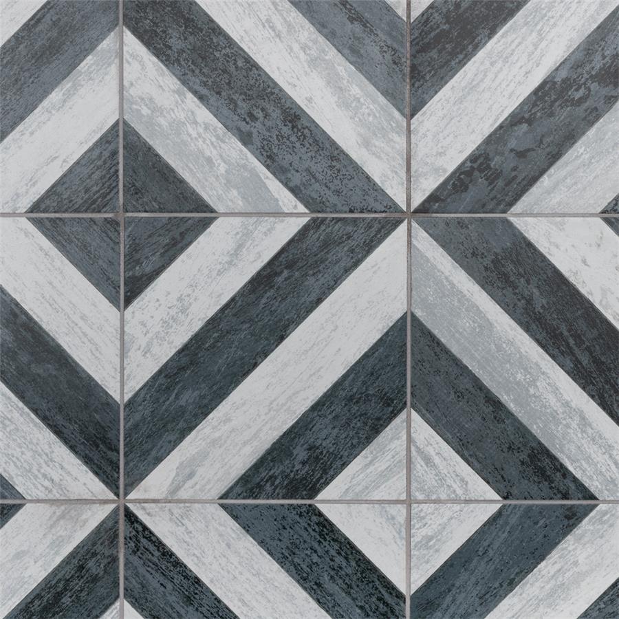 Our Cassis Sete Black 9-3/4 in. x 9-3/4 in. Porcelain Floor and Wall Tile exemplifies the natural and antiquated beauty of reclaimed wooden planks in a simplistic square format. Linear patterns reminiscent of wood planks blend to create an alternating design in varying shades of faded charcoal black and light grey wood tones. Composed of rich detail and a textured, mixed finish surface, this floor and wall tile features stunningly realistic woodgrains and striations for additional visual dimension. Available in 10 print variations, this porcelain tile can be laid out in various different patterns to create a truly unique installation. Its impervious and frost-resistant features make this an ideal choice for indoor and outdoor residential installations including, including backsplashes, bathroom floors and walls, showers, kitchen floors and walls, fireplaces and patios. Tile is the better choice for your space. This tile is made from natural ingredients, making it a healthy choice as it is free from allergens, VOCs, formaldehyde and PVC.Try out our grout test below to determine which grout color suits your design preferences.