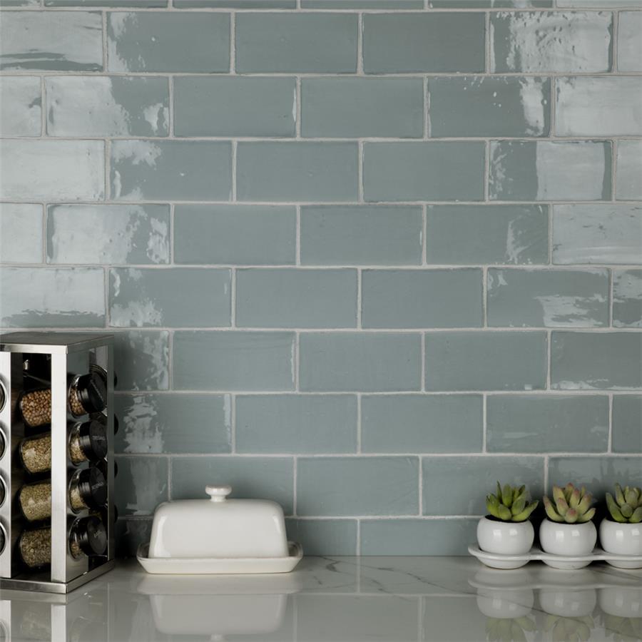 As an updated version of the standard subway tile, our Chester Acqua 3 in. x 6 in. Ceramic Wall Tilehas the allure of classic style, but with a refreshingly modern twist. With slight undulation and a smooth glossy finish, this l subway tile offers a handmade appearance through subtle imperfections that make it look like each tile was handcrafted. Its light blue watercolor inspired tone is subtle enough to seamlessly fit alongside various designs, while still interesting enough to stand out. It is great as a cohesive look or paired with other products in the Chester Collection. Intended for interior wall use, this tile is an excellent selection forkitchen backsplashes, bathroom showers and accent walls.Tile is the better choice for your space. This tile is made from natural ingredients, making it a healthy choice as it is free from allergens, VOCs, formaldehyde and PVC.
