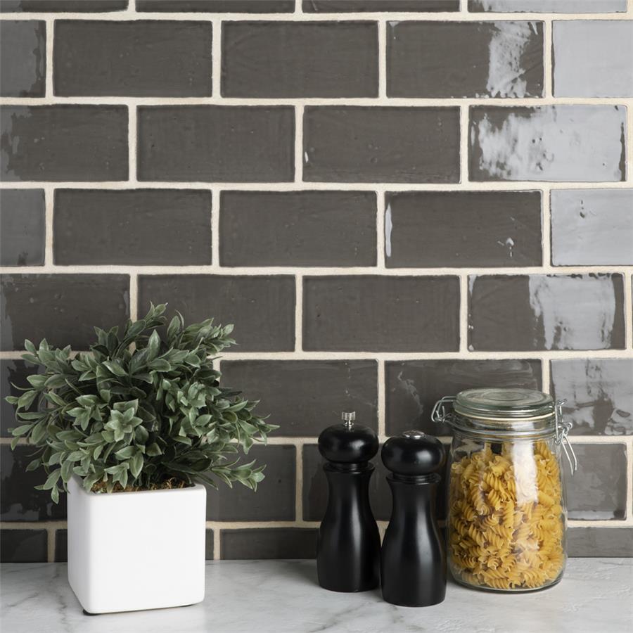 As an updated version of the standard subway tile, ourChester Grafito 3 in. x 6 in. Ceramic Wall Tilehas the allure of classic style, but with a refreshingly modern twist. With slight undulation and a smooth glossy finish, this subway tile offers a handmade appearance through subtle imperfections that make it look like each tile was handcrafted. Its graphite grey watercolor inspired tone is subtle enough to seamlessly fit alongside various designs, while still interesting enough to stand out. It is great as a cohesive look or paired with other products in the Chester Collection.Intended for interior wall use, this tile is an excellent selection forkitchen backsplashes, bathroom showers and accent walls.Tile is the better choice for your space. This tile is made from natural ingredients, making it a healthy choice as it is free from allergens, VOCs, formaldehyde and PVC.
