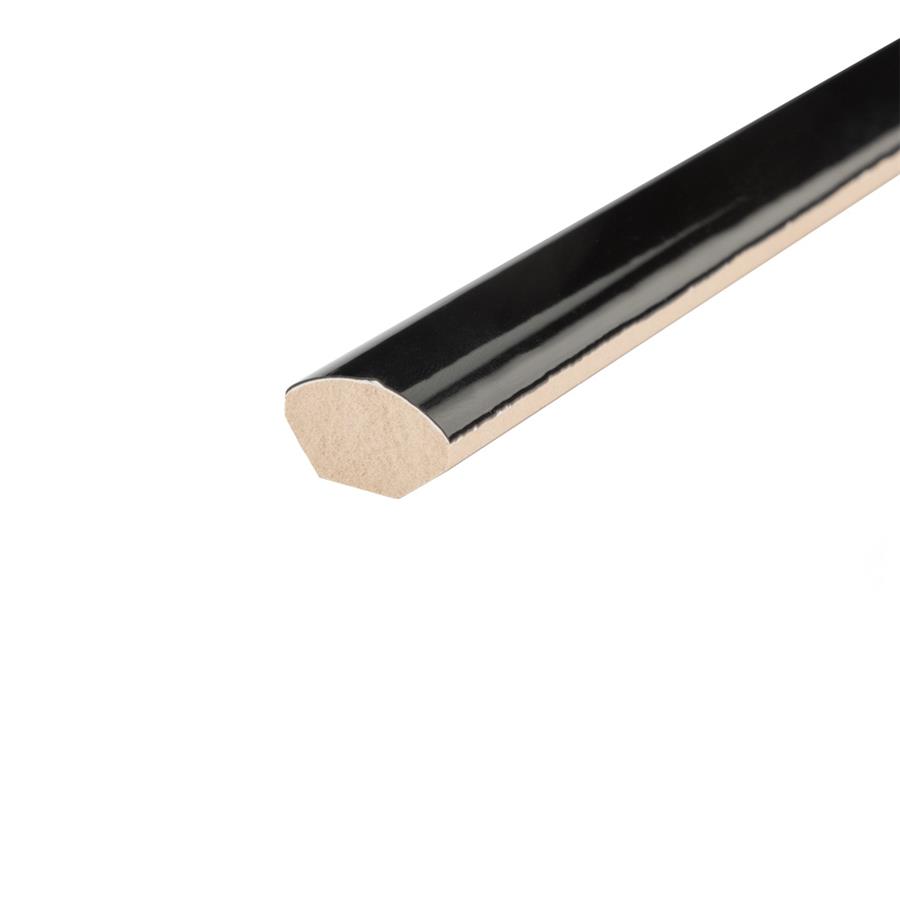 The SomerTile Chester Nero 1/2 in. x 12 in. Demi-Bullnose Ceramic Wall Trim Tile is a simple trim for separating any look. This tile features a black uniform tone and a high sheen finish. Pair this tile with many of our other products for a high style, contemporary look.