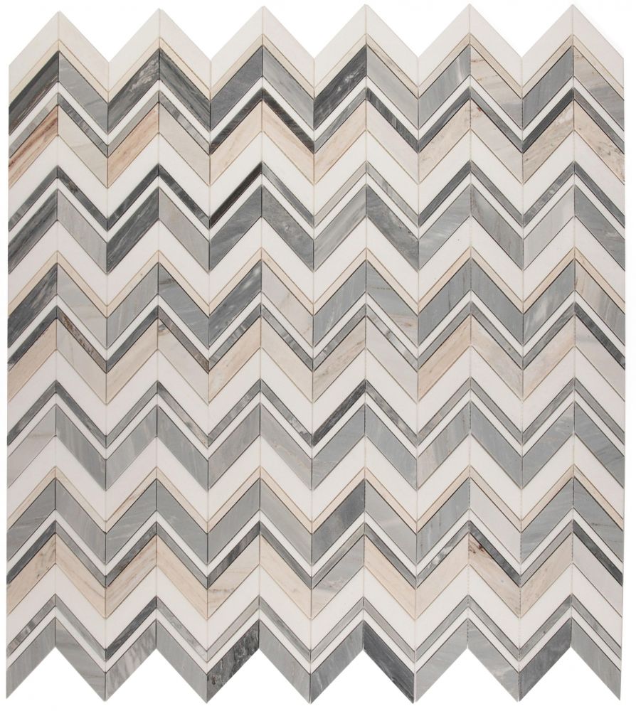 Product Sold By The SheetChevron & Herringbone Series: Chevron Ravenna Blue 11.75×12.25 – Mix of Palissandro Blue and White Thassos marble in Chevron Pattern mosaic.Suggested Grout Color: TBDWARNING: This product can expose you to chemicals including crystalline silica (airborne particles of respirable size) in dust created during fabrication/installation if the product is dry cut/ground or pulverized, which are known to the State of California to cause cancer. For more information, go to https://www.p65warnings.ca.gov/.
