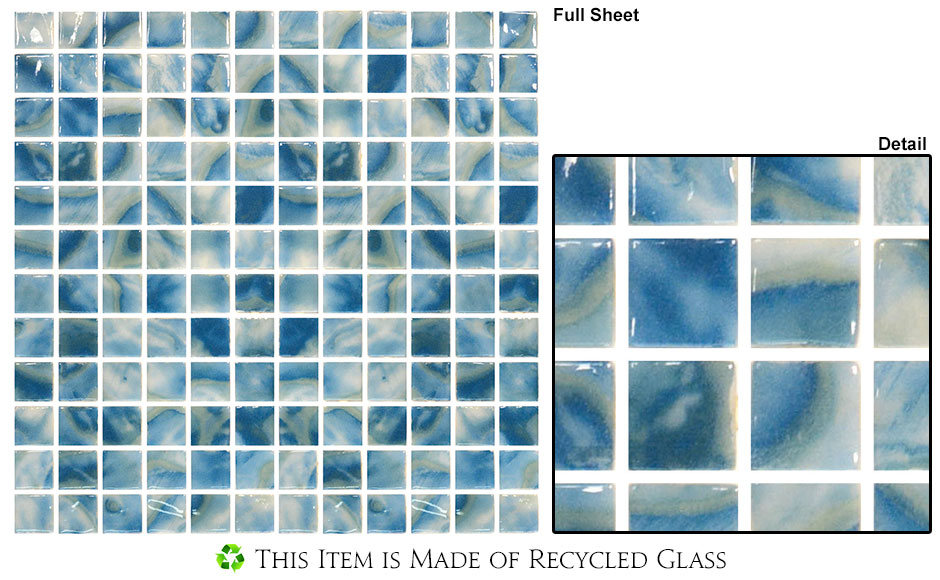 Tile Size: 1″ x 1″Sheet Size: 12 1/4″x 12 1/4″Sheet Coverage: 1.042 SQFRows Per Sheet: 12Tiles Per Sheet: 144Sheets Per Box: 5Cut into Borders: Every rowTile Thickness: 3/16″ (5mm)Grout Joint: 1/16″ (2mm)Dot Mounted: YesSold in box quantities onlyThis Item is Made of Recycled GlassDue to the variance in installation methods, grout colors, lighting, image variances and computer monitor settings; the images above may not accurately represent the true color of the products after installation.Therefore Glazzio Tiles always recommends that tiles not be purchased from an image of any kind.